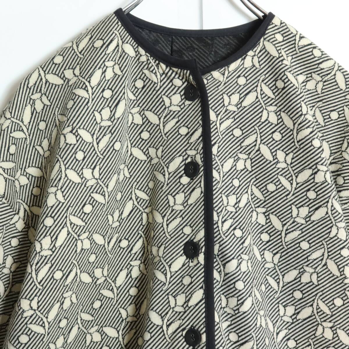 | 商品説明 | 【実寸約】肩幅57袖丈48バスト112着丈45(cm) 【サイズ表記】 F 【素材】 ポリエステル62綿38% 【状態】 使用感少なめの美品 【デザイン】ベージュ×黒系 柔らかな風合いのノーカラージャケットです。 厚手/ストライプ&花柄/フロントオープン お知らせ | こちらは一点限りの商品です。弊店は複数店舗で販売しており、ご注文のタイミングによっては完売となる場合がございます。 誠に恐れ入りますが、何卒ご容赦くださいますようお願い申し上げます。 |