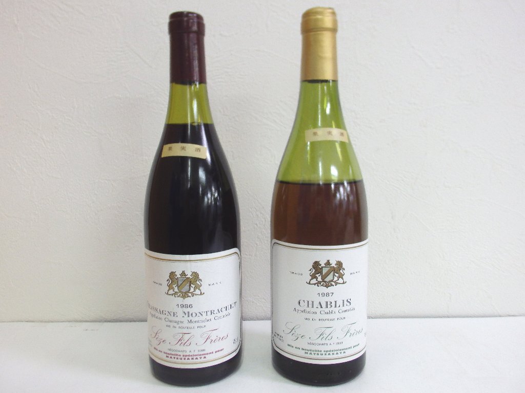 | 内容 | ・Seze Fils Freres シャサーニュ モンラッシェ 1986 750ml 14%/コルク少し下落/液面低下/漏れ跡あり ・Seze Fils Freres シャブリ 1987 750ml 14% /漏れ跡あり/液面低下 |