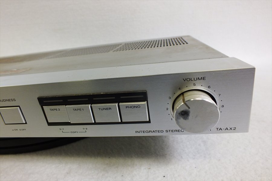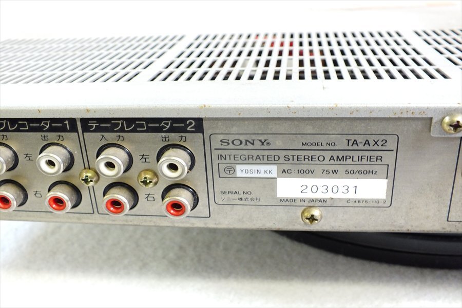 | ◆商品◆ メーカー---------SONY ソニー 型式-------------TA-AX2 付属品-----------画像に写っているものがすべてになります。 ◆外装ランク◆ 【 C 】 ◆状態◆ 中古品の為キズや汚れなどの使用感はご容赦ください。 1 通電します 外装にキズ汚れ有り 音出し確認済。ノイズ有り。 現状品での出品となります。 調整やメンテナンスが必要となります。 【重要】配送送料と送料に送料が0円と表示される場合がございますが、出品画面に記載の送料が落札後にご精算されます。 | |||||||||||||||||