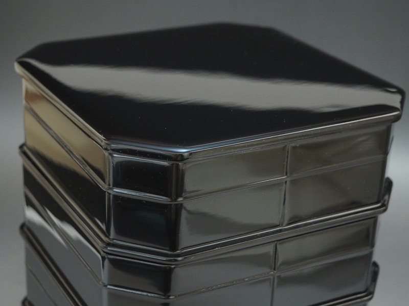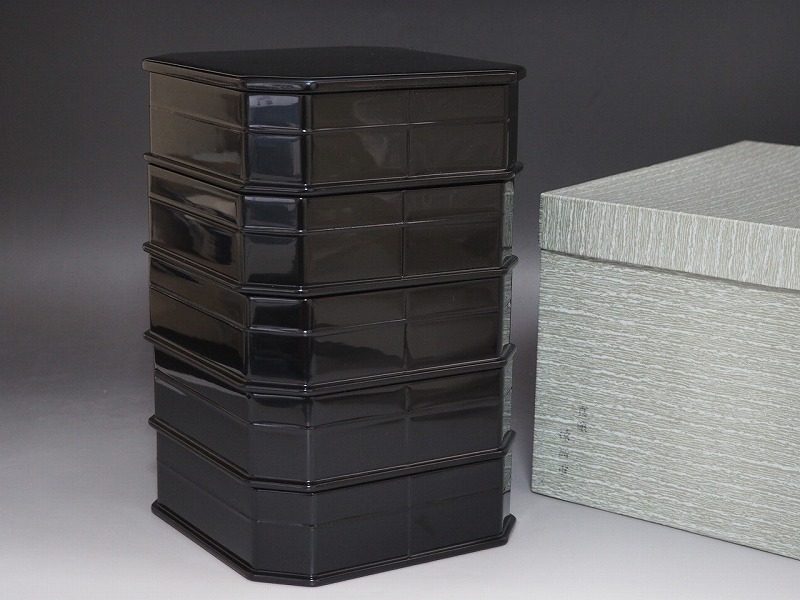 | C0683 真塗 縁高重 化粧箱付 ☆ 茶道具 抹茶器 茶器 抹茶道具 茶懐石 茶事 茶の湯 漆器 木製 木地 折敷 縁高 重箱 菓子器 美品 良品 無傷 | ||