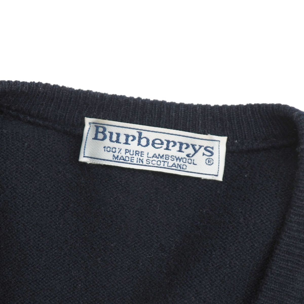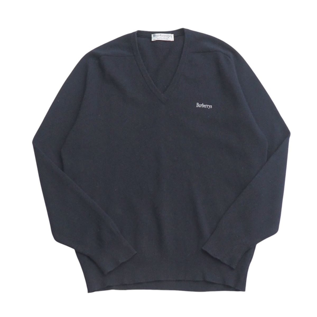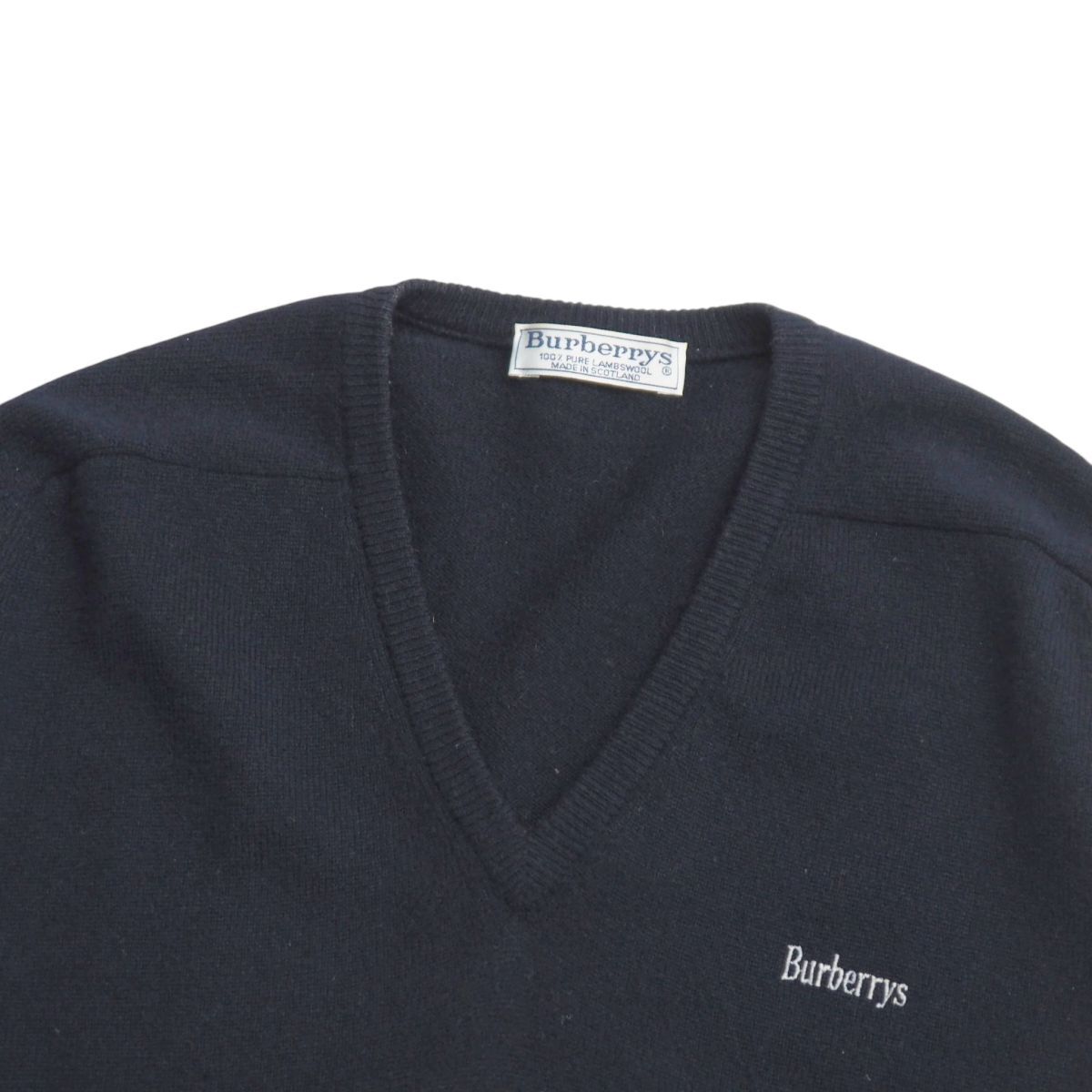 | TJ6245+スコットランド製*90s*ヴィンテージ*Burberrys/バーバリー*メンズ*ラムズウール*ニットセーター*Vネック*ロゴ刺繍*ネイビー系 | |||