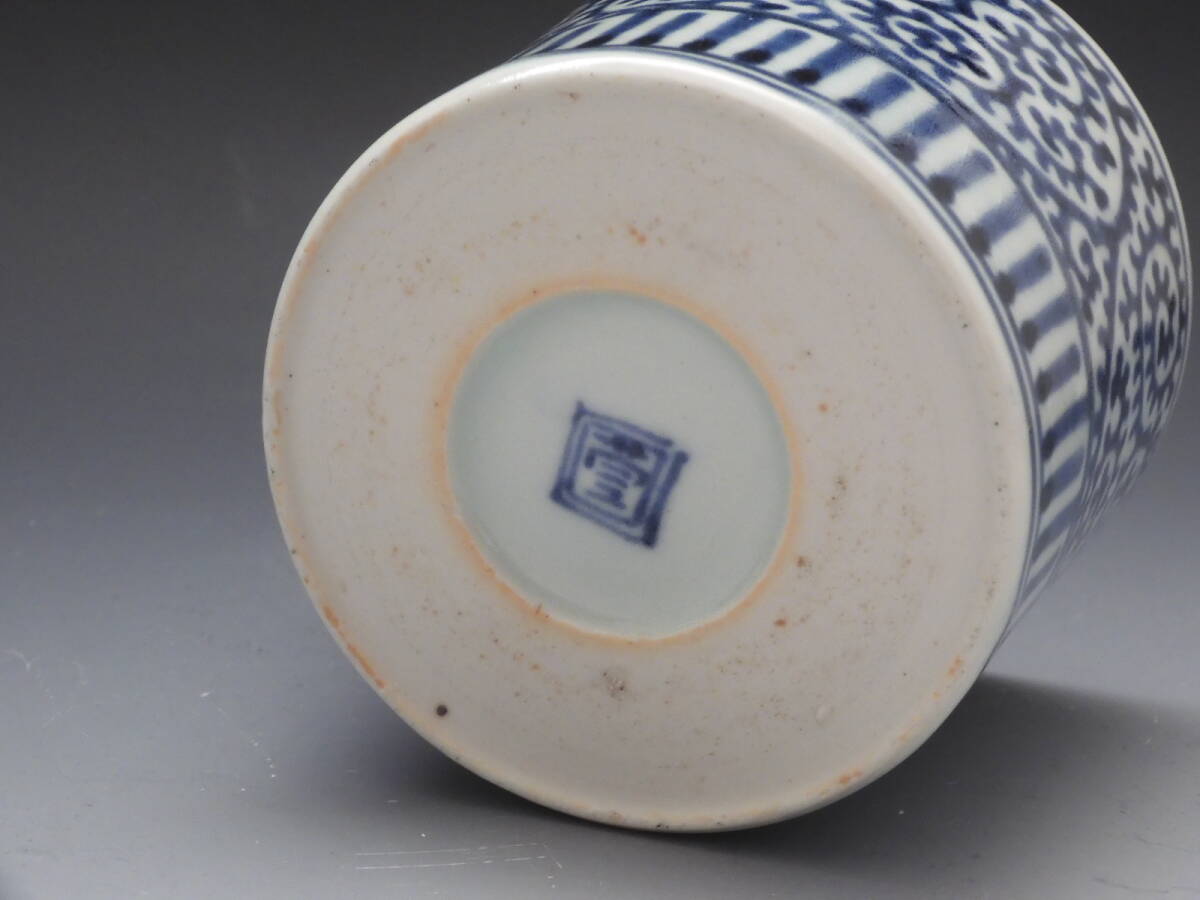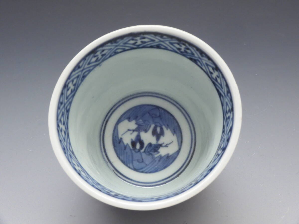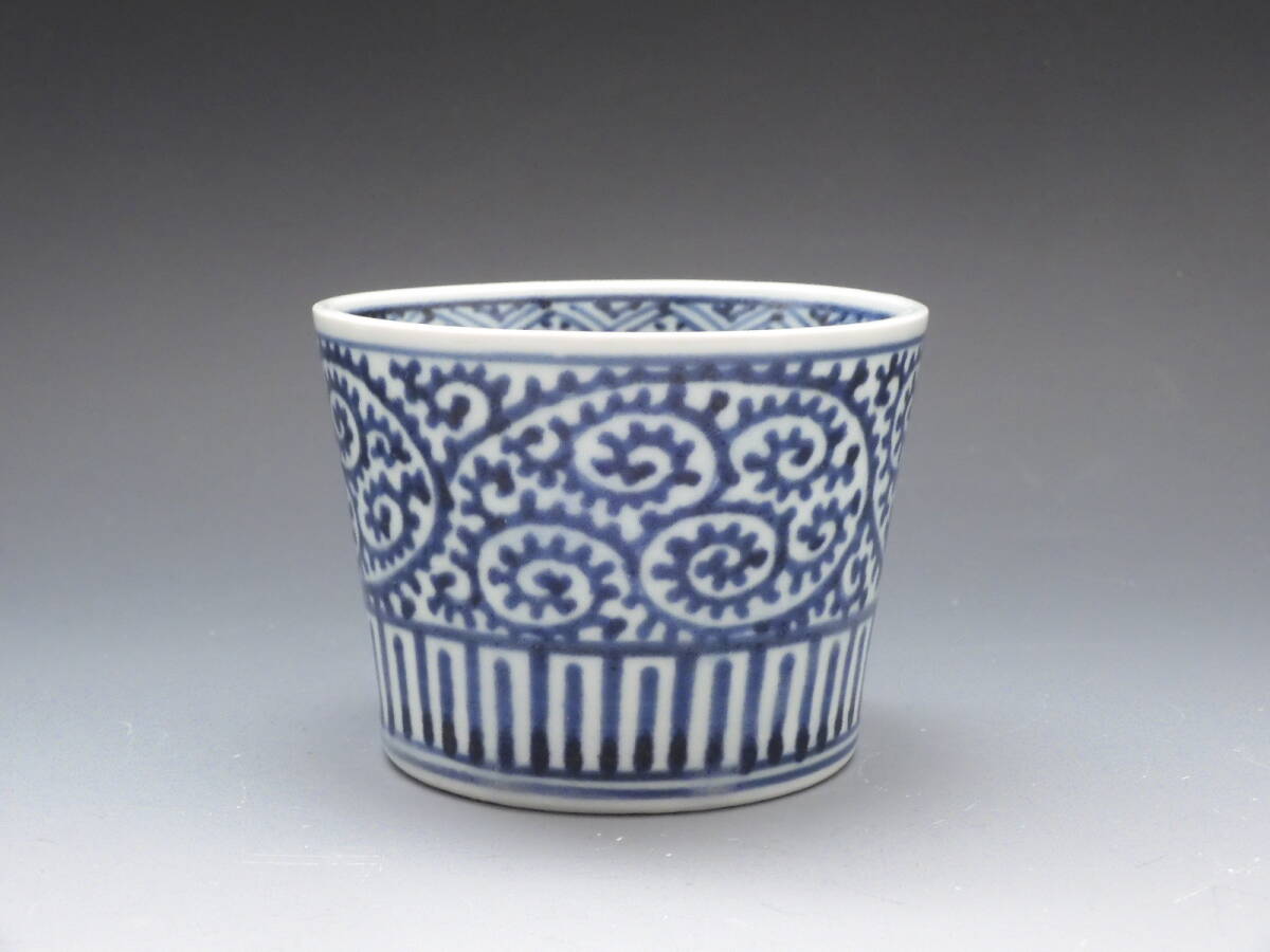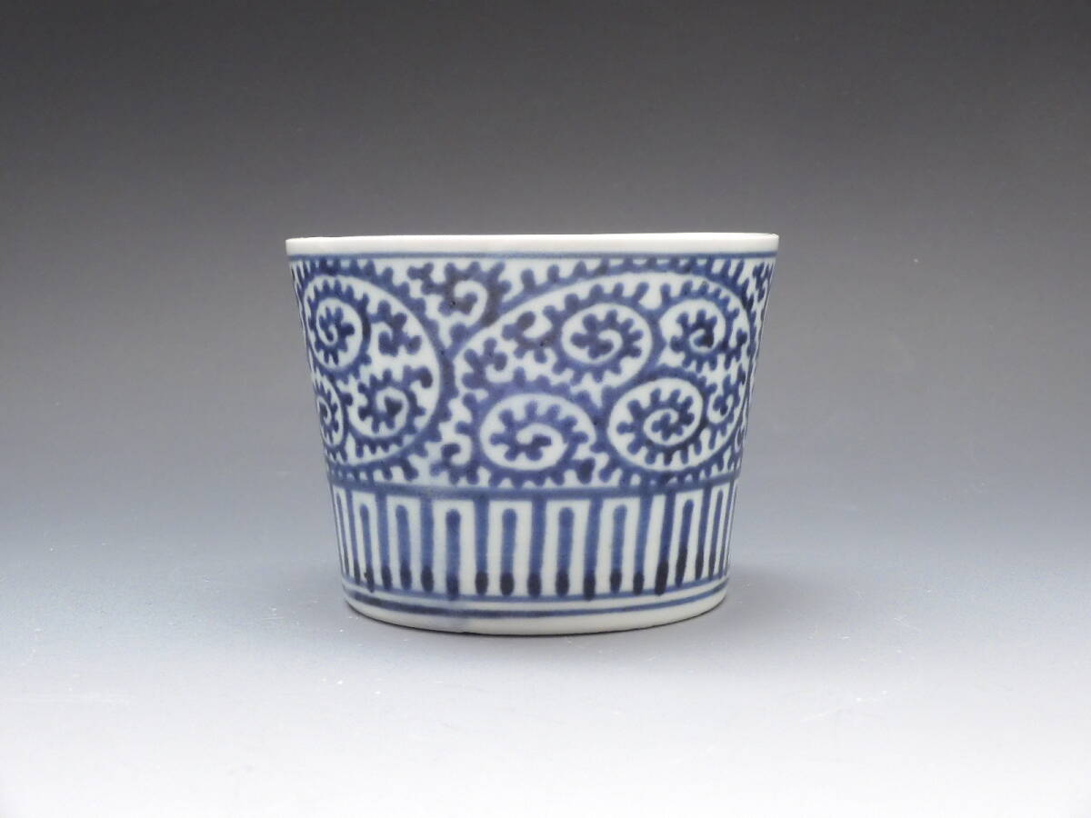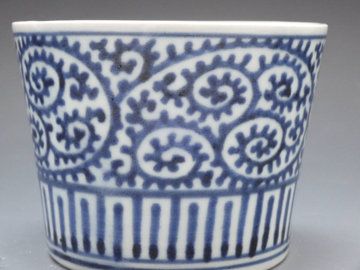 | ○梗○古伊万里 染付 蛸唐草文 大蕎麦猪口 無傷 江戸期 K9◇ |
