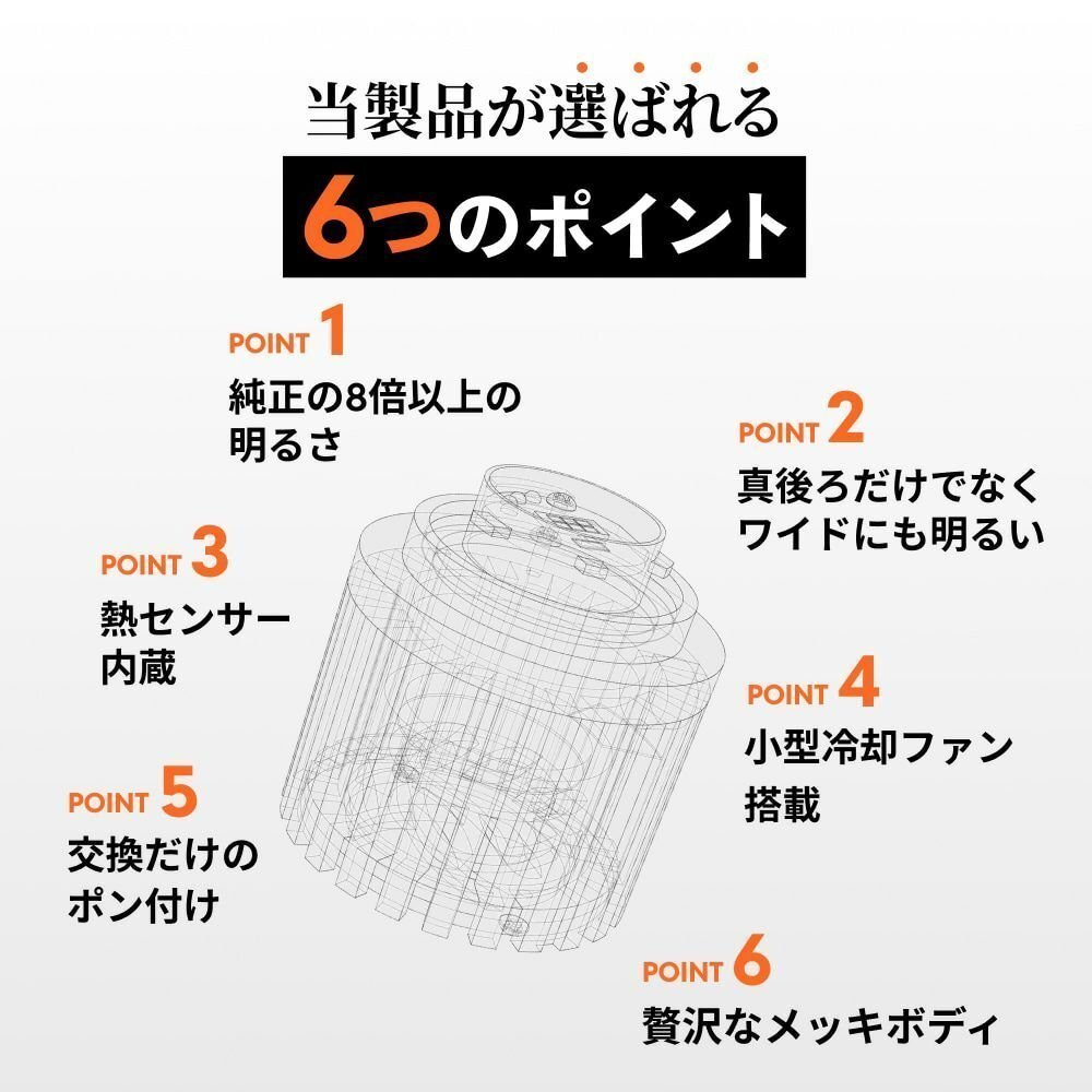 | 【明るさ】 6000lm / 1灯 3000lm ※メーカー測定値 【ケルビン数】6500K(ホワイト)車検対応 【LEDチップ】特注の明るいLEDチップを搭載 【ボディ素材】エアロアルミ/メッキ加工 【冷却ファン】静音設計 小型電動ファン内蔵 【防水防塵】IP65 【消費電力】25W 【電圧】12V 【保証】2年 / 保証書が紛失しても安心の保証 ※注文番号をお伝えいただければ対応可能 【付属品】 ●LEDバルブ×2(愛車のバックランプの数をご確認ください。) ●六角レンチ/特殊ねじ工具×1 ●結束バンド×2 ●取扱説明書(製品保証書)×1 【商品説明】 【最新モデル!爆光バックランプが新登場!】 明るいバックランプといえばHID屋 楽々車庫入れ!トヨタの最新車両などに採用され始めているLED LW5B。 純正品700lmに対して、本製品は6,000lmと約8倍の明るさを誇ります。 【このバックランプは、まさに、ヘッドライト級の明るさ!】 「夜の車庫入れが不安」「明るいバックランプが欲しい」というお客様の声にお応えし、爆光の新製品を開発しました。 確かな光量でお客様の快適なドライブシーンをサポートします。 そして車検対応! NOAH、VOXYなどの人気車種に取り付け可能です。 【後方がよく見える!】 明るいLEDバックランプは車両後方部をはっきり照らしてくれます。 視界の悪い夜や悪天候時の「見落としリスク」を軽減して、安全性が大幅にアップします。 ・強力に照射:強い光を安定的に照射してくれるので、見たい場所を明るくはっきりと照らし出してくれます。 ・広域に照射:幅広く照射してくれるので、後方部の手前側から側面まで見やすくなります。 バック駐車などが苦手な方でも、歩行者や障害物を捕捉しやすくなるので、より安心感が増します。 楽々車庫入れを実感いただけます! 【歩行者・後続車からよく見える!】 後方から照射される明るいバックライトにより、歩行者や後方の車両に愛車の存在やドライバーの意思を伝えやすくなり、事故などの危険性を低減させます。 バルブ形式はタイプA(LW5A/LW5B)とタイプBの2種類からお選びいただけます。お車に適合する形式をお選びください。 【取付簡単】 小型でシンプルな作りにより、初心者の方でも難なく取り付けることができます。 付属の工具を使用して光軸を調整することも可能です。 ボディやケーブルのサイズは装着の邪魔にならないように適切な設計をしています。 小さなボディには電動ファンやドライバーの機能を格納。 長時間の点灯時にLEDが加熱し過ぎないよう熱対策が施されています。 高耐熱・高耐久という基本性能だけでなく、防水性や防塵性にも優れ、精密機械の大敵となる雨や湿気、チリやホコリからライトを守ってくれます。 【明るさ品質へのこだわり】 現在、数多くのアフターパーツが販売されていますが、機能と耐久性を満たしている製品に出会うことは簡単ではありません。 本製品は、高性能のICの採用による徹底した品質管理を行なうことで、ハイパワー出力を実現しています。 ・光を反射するメッキ加工で明るさUP! ・特注のLEDチップ採用で明るさUP! ・コンパクトなのにハイパワーで明るさUP! 【注意事項】 ※ご購入の際は車種別適応表を十分にご確認の上、 ■取付前に必ず点灯確認を行ってください。 ■いかなる場合でも取り付けに掛かった工賃や、破損部品の弁償などは行いません。 ■バージョンアップした商品は予告無しに外観が変わる場合がございます。あらかじめご了承ください。 |