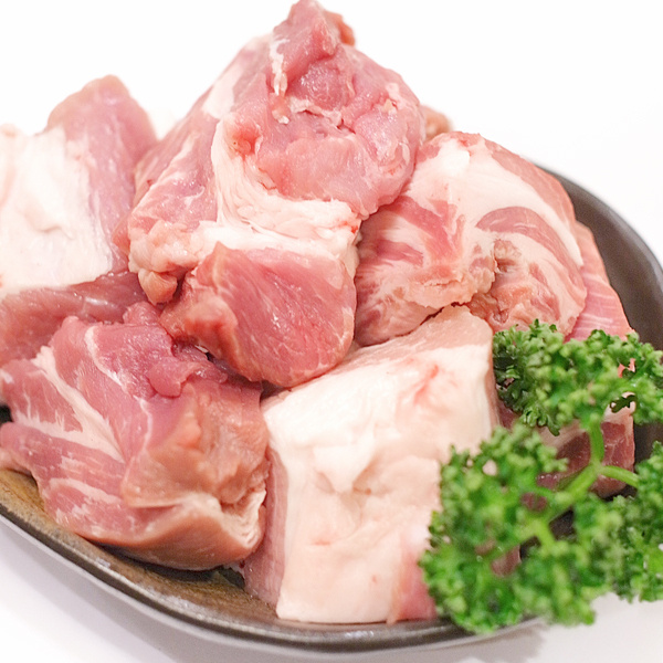 ホエイ豚:牛乳からチーズを作る時に副産物としてできる"ホエイ(乳清)"を飲ませて育てた豚。風味のよさ、やわらかさが特徴です。 どんな用途にも使いやすい豚の切落しです。カレーなど煮込んでもよし、焼いても美味しい万能食材です。 |