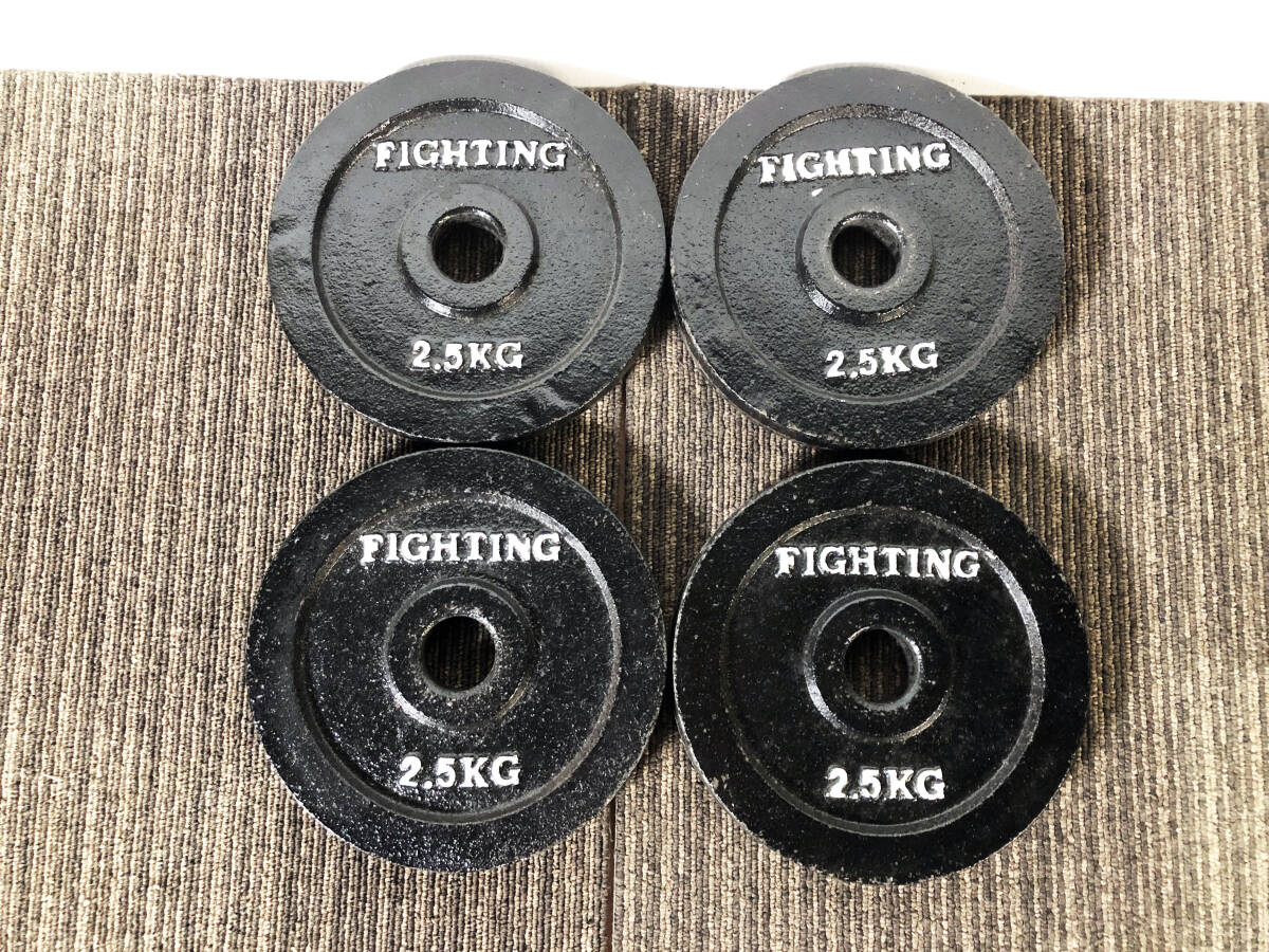 中古★FIGHTING/ファイティング ダンベルセット シャフト2本・プレート(2.5㎏×4枚・1.25㎏×4枚)【FIGHTING/セット】FT91