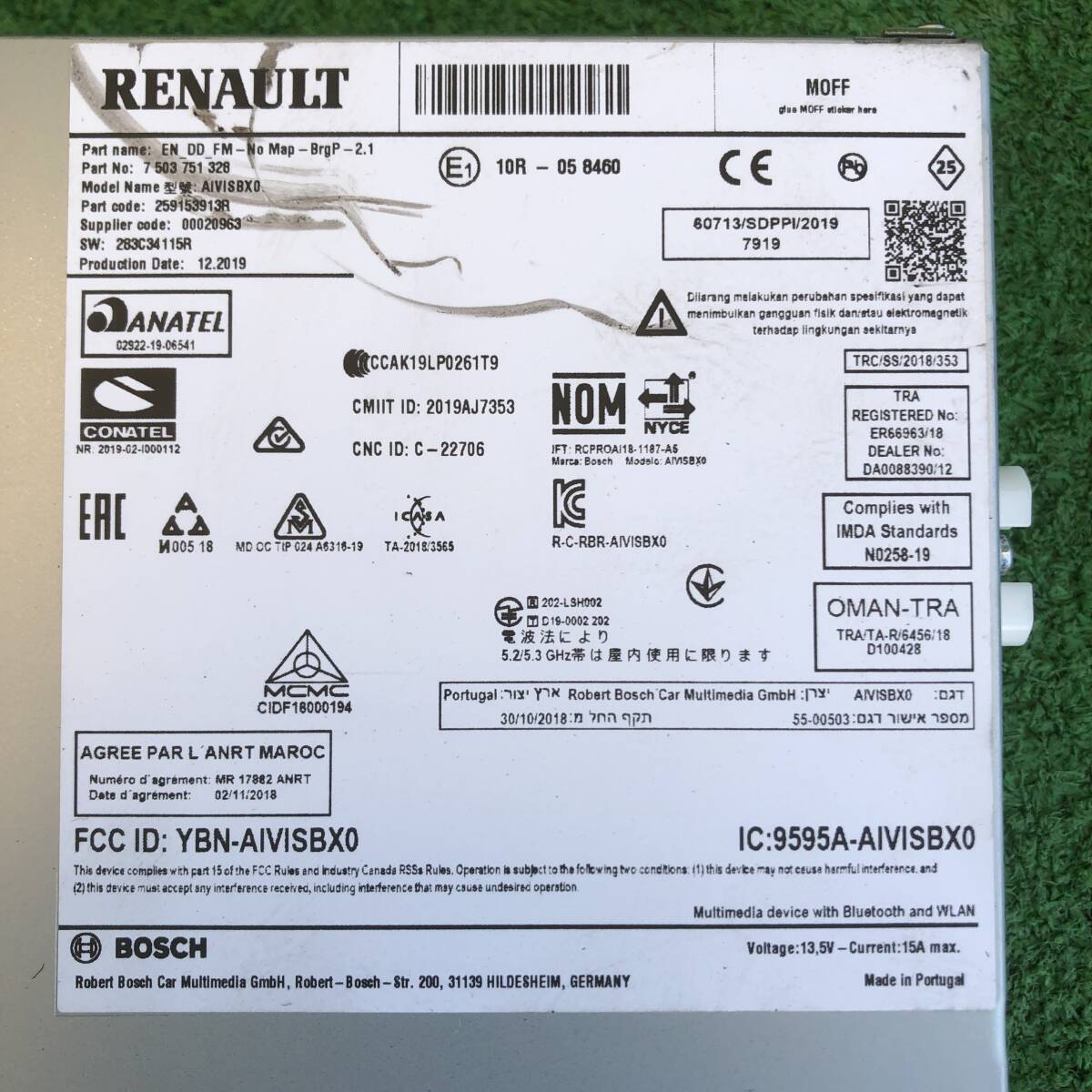 | 240414-17 ルノー トゥインゴ 後期 AHH4B 純正 ナビモニター ユニット 280347286R AIVISBXO 259153913R 低走行2,505km |