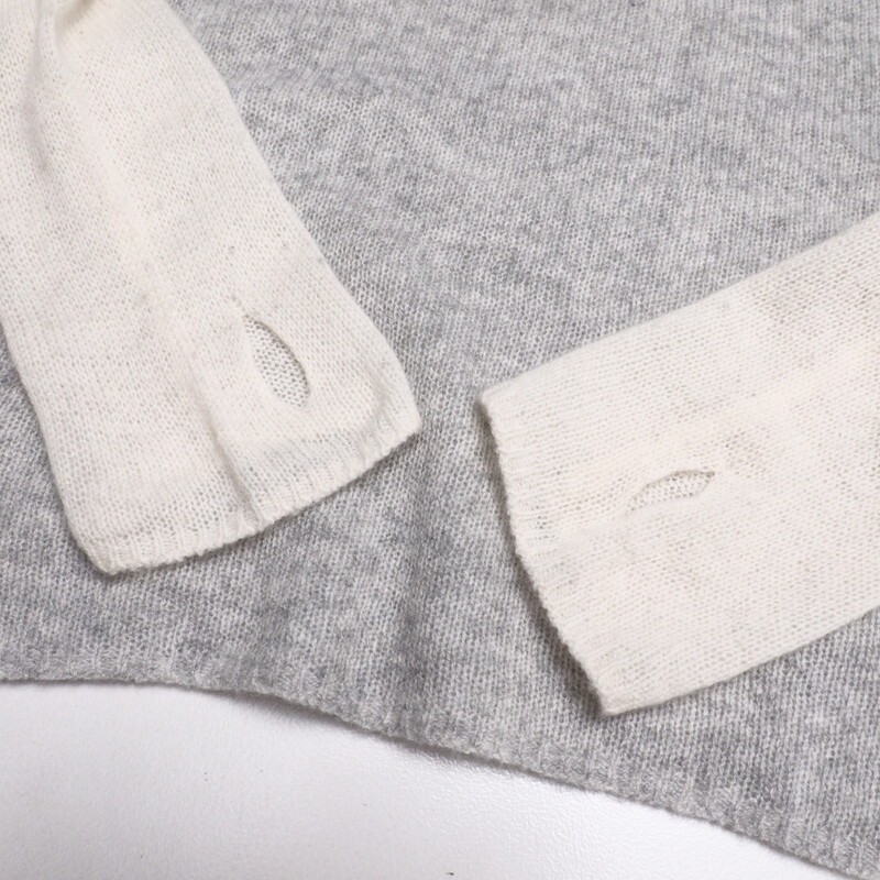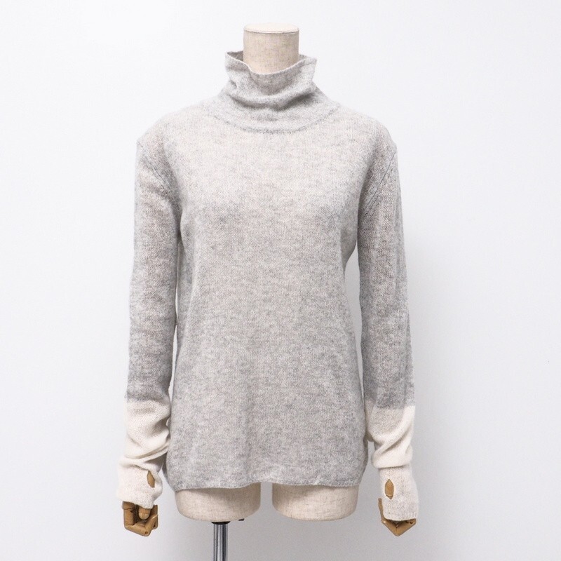 | TJ3242▼アダワス ADAWAS*カシミヤ100% ハイネック サムホール ニットセーター バイカラー フリーサイズ グレー×ホワイト系 | |||