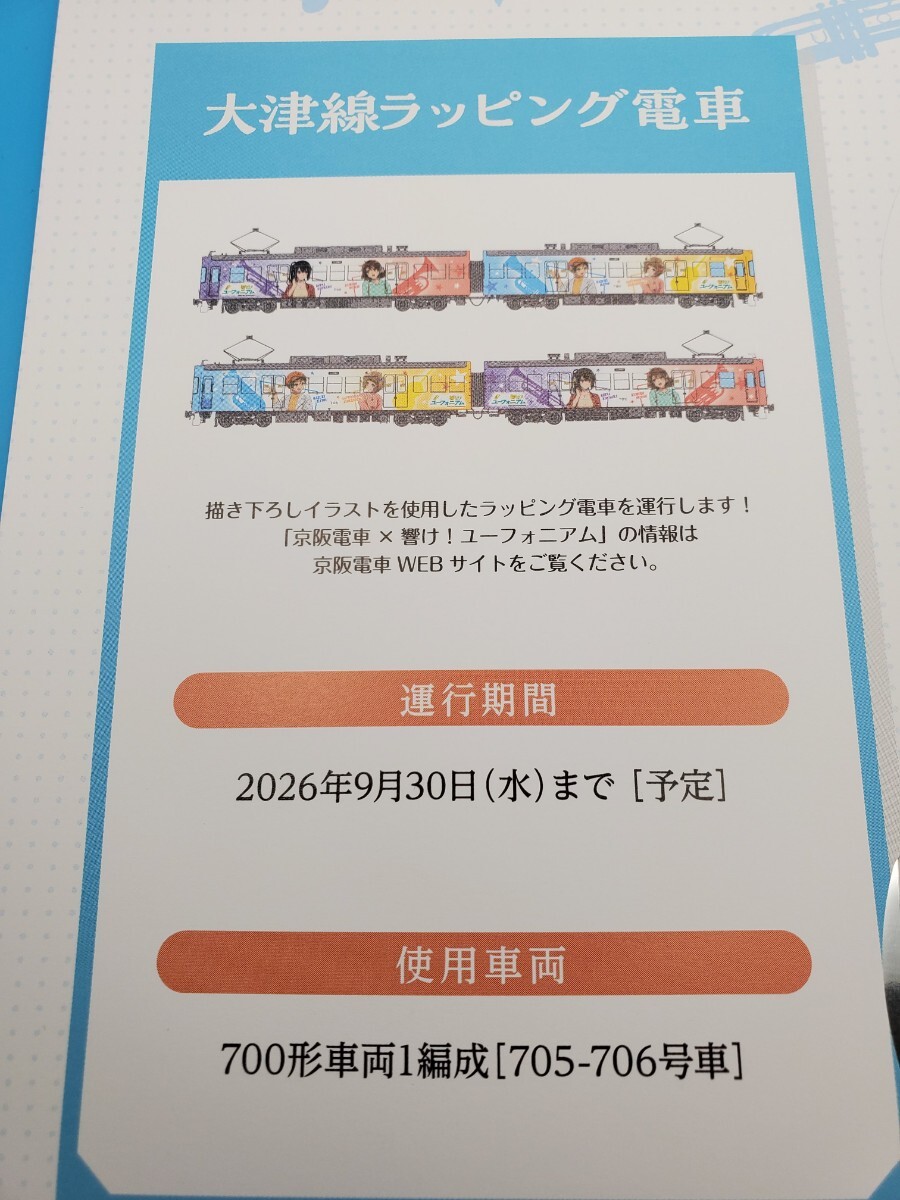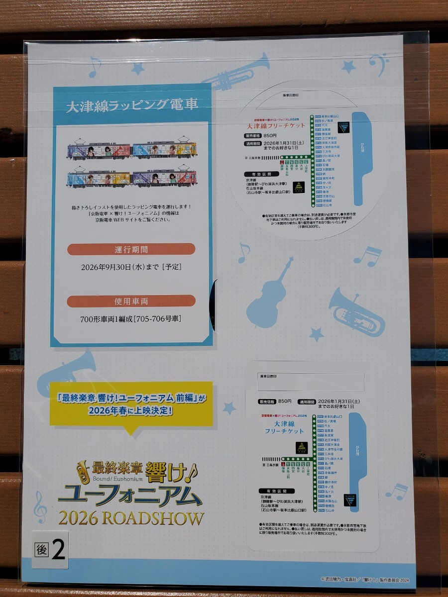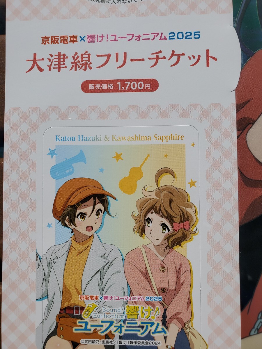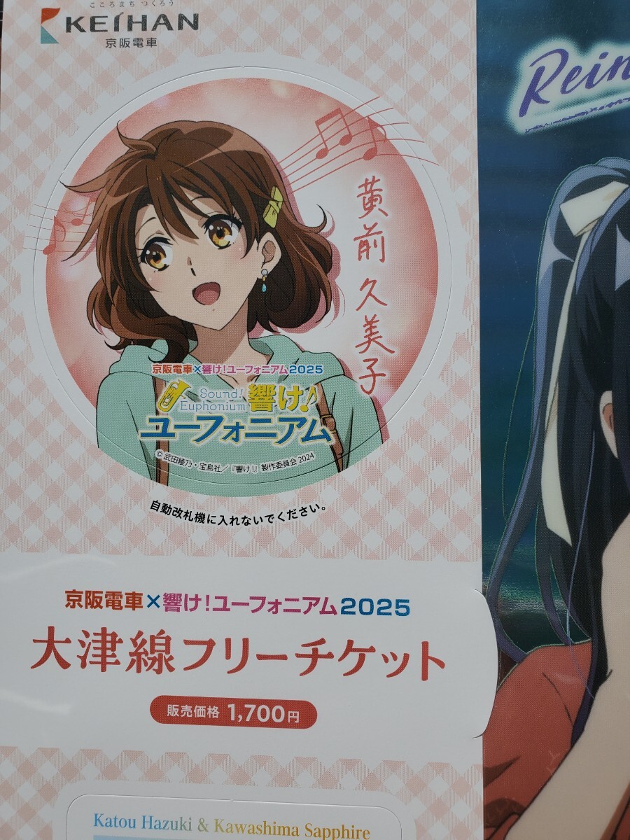 大津線・浜大津駅だけの特別デザイン!京阪電車と大人気アニメ「響け!ユーフォニアム」の夢のコラボレーションが実現しました。2025年限定の高坂麗奈バージョンフリーチケットは、アニメファンや鉄道好きの方なら絶対見逃せないレアアイテムです。持つだけで心が弾む、魅力的なデザインがあなたのコレクションにぴったり。