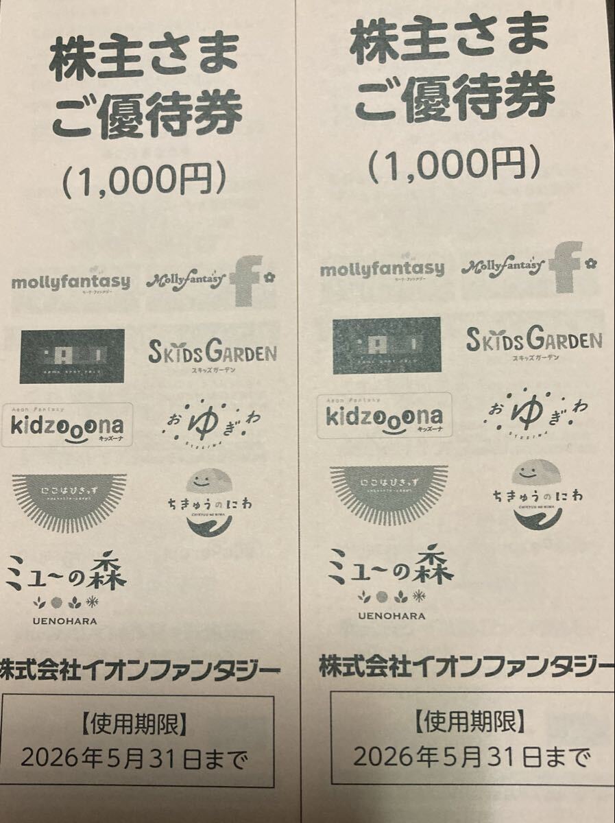 イオンファンタジー株主優待券 2,000円分(100円券×20枚)です。| 出价者 | 信用 | 价格 | 时间 |