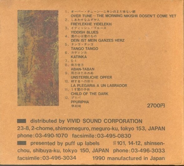 1990年作。篠田昌已のソロだが、実質的には“コンポステラ”のファースト・アルバムとも言われている。豊かな音楽性と反骨精神が混じり合った名盤!//国内盤 Puff Up 紙ジャケCD