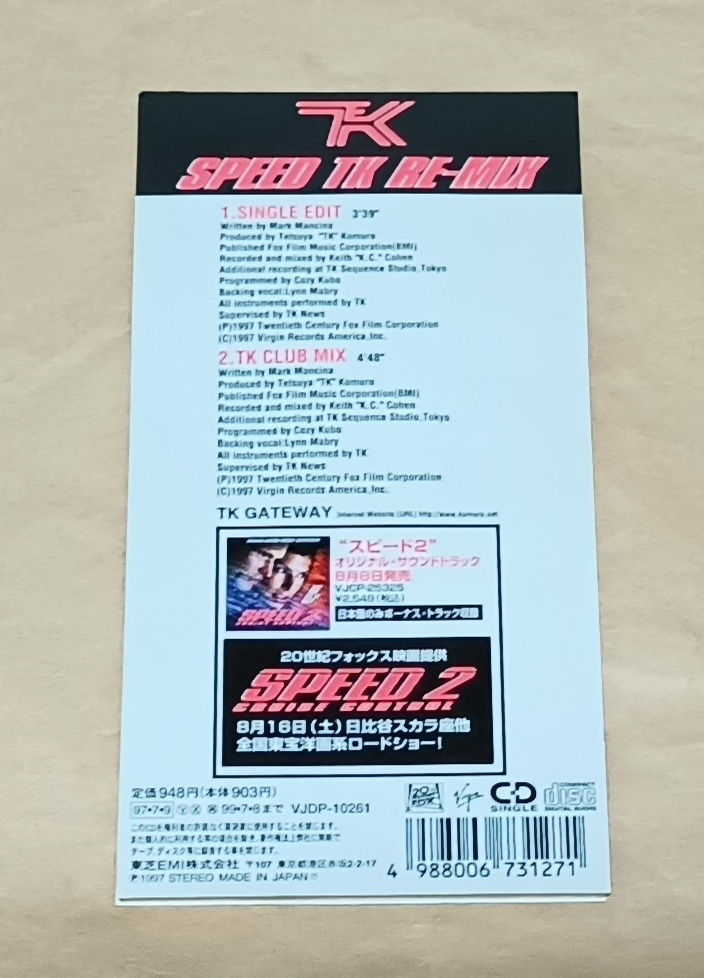 | 8cmCDシングル【スピード2◆小室哲哉/SPEED TK RE-MIX】TM NETWORK◆桜庭和志/高橋由伸 | |