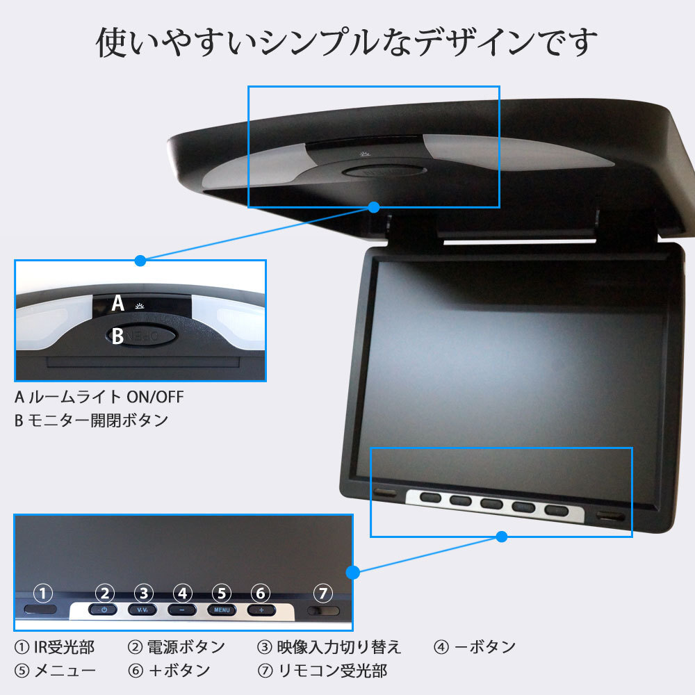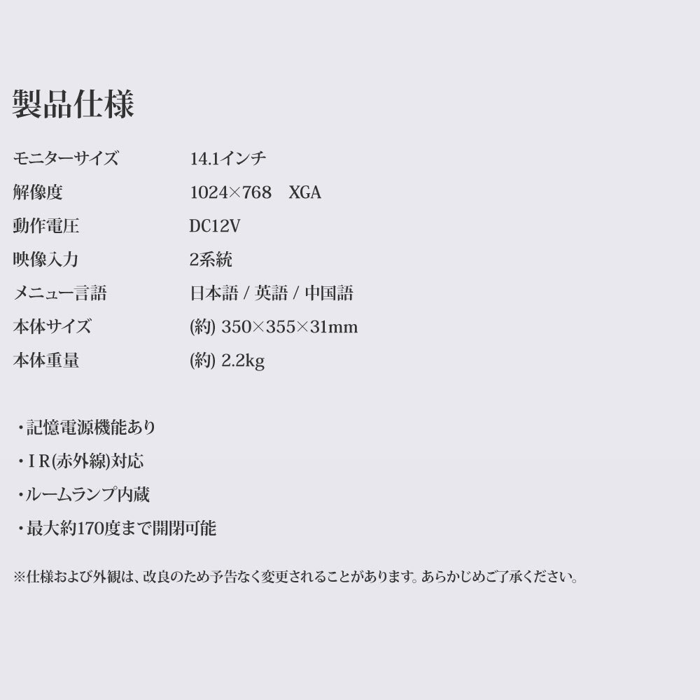 14.1インチ高画質 フリップダウンモニター TFT LCD液晶モニター LEDライト付 F1410