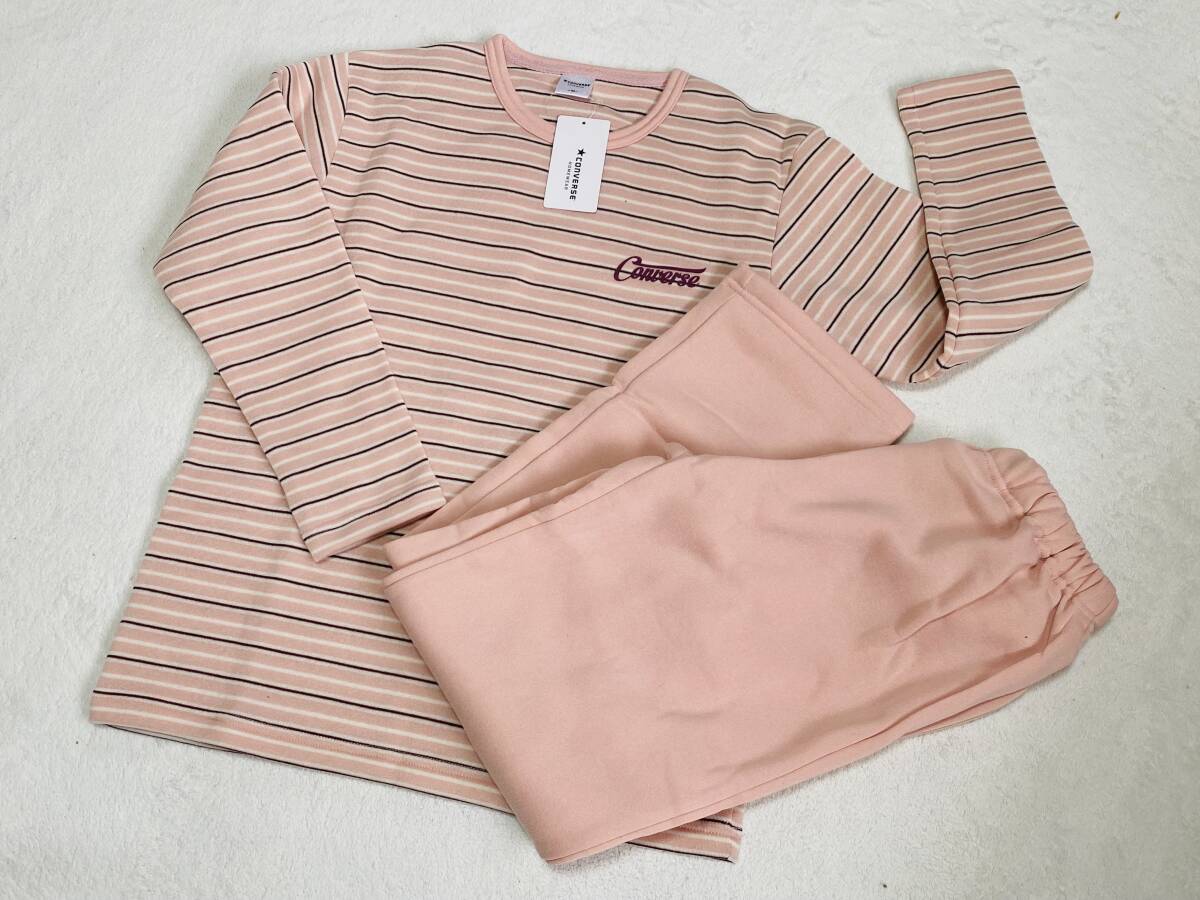 タグ付新品【コンバース】 婦人長袖パジャマ 長袖+長ズボンの上下セット 本体はスウェット地素材 軽量で暖か! 上衣、パンツともに裏起毛タイプ ★サイズ M バスト:79〜87cm ★品質 ポリエステル100% |