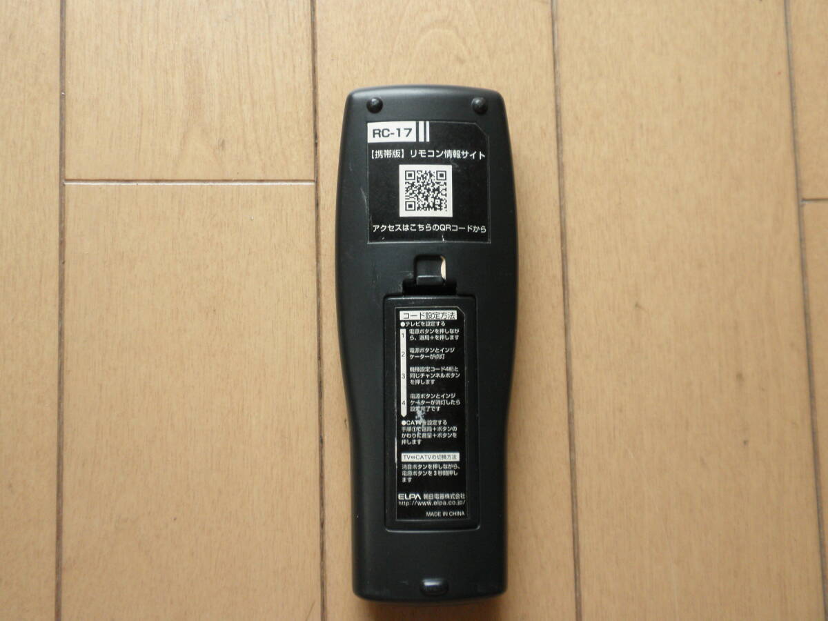 朝日電機 ELPA製のテレビ用リモコンRC-17です。