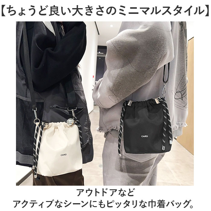 | 商品説明 | ・・【ちょうど良い大きさのミニマルスタイル】 ・アウトドアなどアクティブなシーンにもピッタリな巾着バッグ。 ・【身軽におでかけ】 ・スマホやミニ財布など必需品が入れられるサイズ感♪ ・【立体感がかわいい】 ・巾着のドローストリング仕様でフォルムを変えられる。 ・【肩掛けも斜め掛けも自由】 ・調節可能なショルダー付きで持ち方選べる◎ ・【小物の整理整頓】 ・内側にファスナーポケット付きで細かいものも収納できる〇 ・【軽い素材で使いやすい】 ・ナイロン素材使用で軽量かつ、撥水効果で少しの雨なら大丈夫◎ |