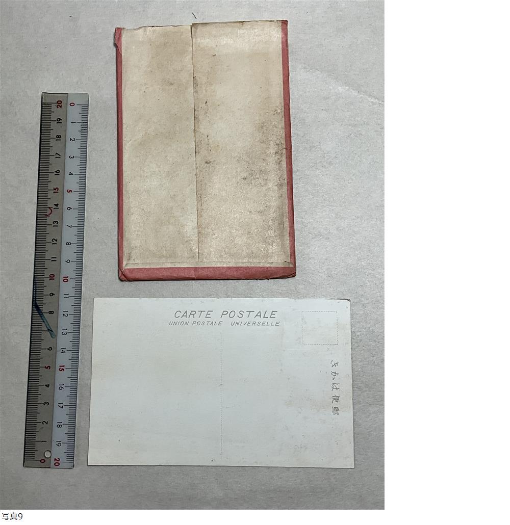 袋に破れや汚れ、絵葉書他にもシミ、ヤケ、汚れなど時代のダメージがあります。
