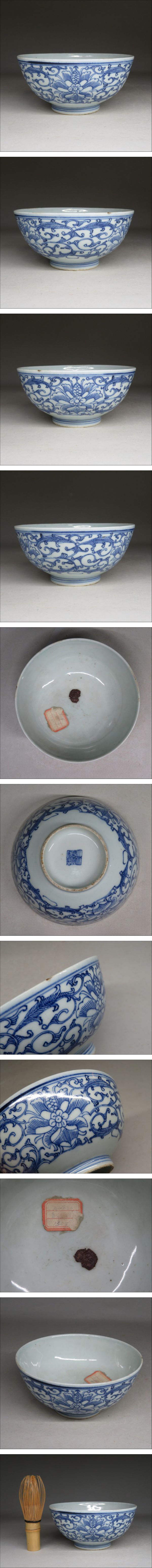 【東】清時代 「大清嘉慶年製」 青花唐草花文碗 中国美術/古美術・骨董品 lot:21413