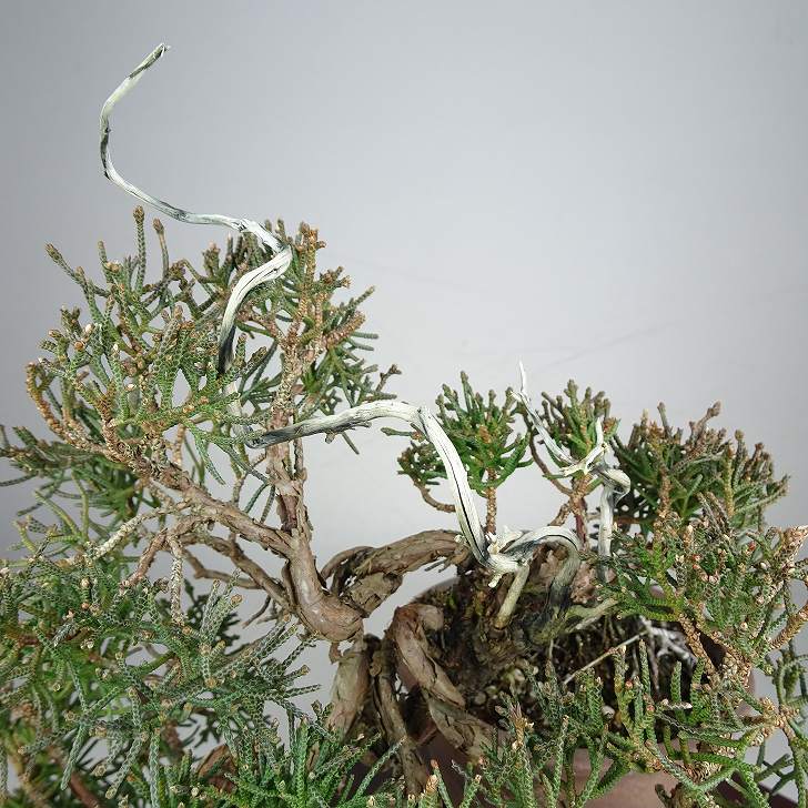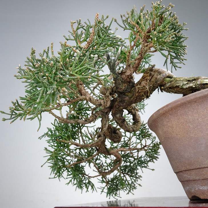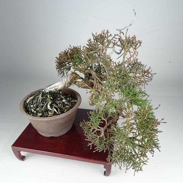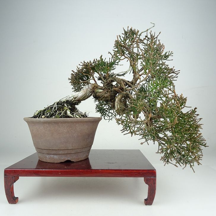 | ■植物ですので撮影時期や季節によって剪定などの手入れにより写真から変化がございます。撮影日をご確認のうえ、ご注文ください。 ■年に一度、冬頃にジン・シャリのお手入れをおこなっています。薬品の関係で黄色く変色しているようにみえる場合がありますが徐々に薄れていくので問題はありません。 【真柏盆栽】 シンパクの1番の特徴と言えば、短く締った紐状の葉と、わずかな水吸いでも生き抜くことができる強靱な幹枝です。自然界では積雪や強風などで押しつぶされ木部が露出し、朽ちて白骨化したものが見られます。枝の一部が白骨化したものを神(ジン)、幹の場合は舎利(シャリ)といいます。 |