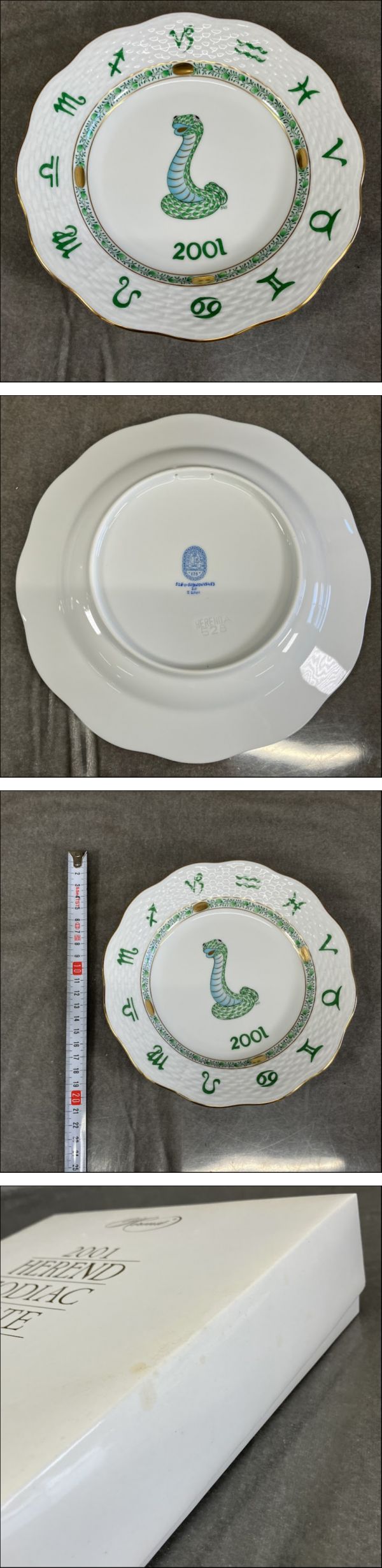 | 商品説明 | ★最後までお読みいただき、ご理解の上でのご入札をよろしくお願いいたします。 【FU 002】【未使用 保管品】 HEREND ヘレンド ZODIAC PLATE 2001 イヤープレート 巳 飾り皿 ヘビ 1枚 金彩 コレクション 箱入り 【動作状況】 こちらは、Cになります。 A:動作確認OK(全ての機能が問題なく使用できるか保証できません) B:通電のみ確認(動作確認は行っていない為ジャンク品の可能性含む) C:動作未確認品(ジャンク品の可能性含む) D:不動品、ジャンク品 ※動作未確認の商品は保証出来ません。 【商品状態】 ※箱に汚れがあります。画像にてご確認ください。 基本的に中古品の為、スレや傷・汚れなどございます。 多数商品がある場合、傷や汚れを写真に載せきれない可能性もございます。 あらかじめご理解・ご了承の上入札をお願いいたします。 また、細かくクリーニングしている訳ではありませんので 状態を極度に気にされる方、神経質な方は入札をお控えください。 ■写真に写るもののみの販売となります。 写真にないものは付属いたしません。 画像をご確認の上、商品の状態に納得して頂いた方のみ入札をお願いいたします。 【サイズ】 画像にてご確認ください。 ※素人採寸のため多少の誤差はご容赦ください。 【取引ナビの対応日時】 ■平日9:00-17:00となります。※土日祝日は休業 【発送方法】 発送は佐川急便よりお送りいたします。 原則ご入金後、発送まで3日~7日お時間を頂いております。落札商品の量によって発送までのお時間が前後してしまう可能性があります。商品をお急ぎの方はご注意ください。 ※発送元地域が異なる商品の同梱はできません。 また土日祝日はの取引全般をお休みしておりますので発送/連絡はできません。いつ頃発送するのか等の催促はおやめください。 ※沖縄・離島の方は【中継料】が発生し送料が高額になります為、佐川着払いとなります。 ※中継料が発生した場合、追加で中継料分の不足送料を請求させて頂きます。必ずご自身のお住まいをご確認頂いてから入金をお願い致します。 【直接引き取り】 引き取り場所は東京都八王子市になります。 詳しいご案内場所は落札後、取引ナビにてご連絡いたします。 受付時間:平日10-17時 (12-13時を除く) 商品の保管期間は支払い後、1週間(7日間)とさせていただきます。 直接引き取りをご希望される場合は、以下の通りお手続きをお願いいたします。 お取引の際は、「単品取引」を選択してください。 送料の選択では、必ず「0円(無料)」をご指定ください。 【重要】 システムの都合上、複数ご購入の場合でも「まとめて取引」は選択されないようお願い申し上げます。 ご理解とご協力のほど、よろしくお願いいたします。 ■手順 ① 取引情報の入力 ② yahoo!かんたん決済で支払うをクリック ③ 配送方法を直接引き取り0円を選択し決済を行ってください。 ④ 取引メッセージに 直接引き取り希望と、希望日、希望時間帯をお知らせください。 後程、ご案内の通知をいたします。 【注意事項】 ■発送連絡と同時に評価も入れております。評価不要の方はご落札時にメッセージでお知らせください。 ■商品到着後、破損があった場合は配送業者へ一度ご連絡をお願い致します。 ■発送方法の変更はお受けできません、また送料に納得がいかないままの入札はご遠慮ください。 ■商品到着後7日以上経ってからの返品・返金は対応出来ません。品物が到着次第すぐに商品の状態をご確認ください。 ★他にも沢山の商品を出品しております。 ご興味のある方は、他の商品も是非ご覧下さい。