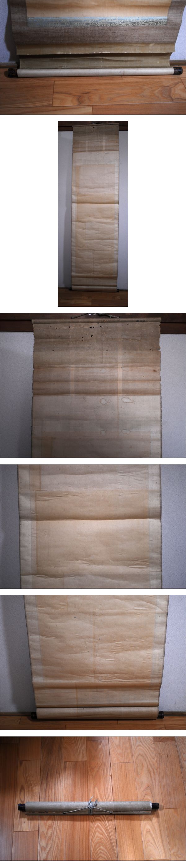 | 商品: 掛軸 画 鯉 サイズ: 画 横約40cm×縦約119cm 全体 横約49cm×縦約186cm(横は軸部含まず) 軸幅 約55.5cm 大まかな測りです。 ※傷・汚れ・シミ・折れ・穴など多くございます。(画像参照) 商品詳細はわかりません。画像にてご判断いただけると助かります。 画像のものだけです。 「ノークレーム・ノーリターン」を納得された上でのご入札をお願いいたします。 送料は下記に送料表がございますのでご参考下さい。 ※長期保管、経年劣化がある場合もありますので、よく画像にてご判断お願い致します。ご理解いただける方のみ入札お願い致します。 | ||