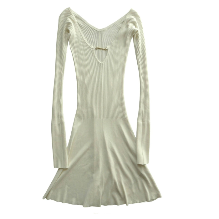 | ジャックムス(JACQUEMUS) ロゴ チャーム ミニドレス リブニット ワンピース 34 ホワイト 241KN356 ウェア(未使用品)中古 |