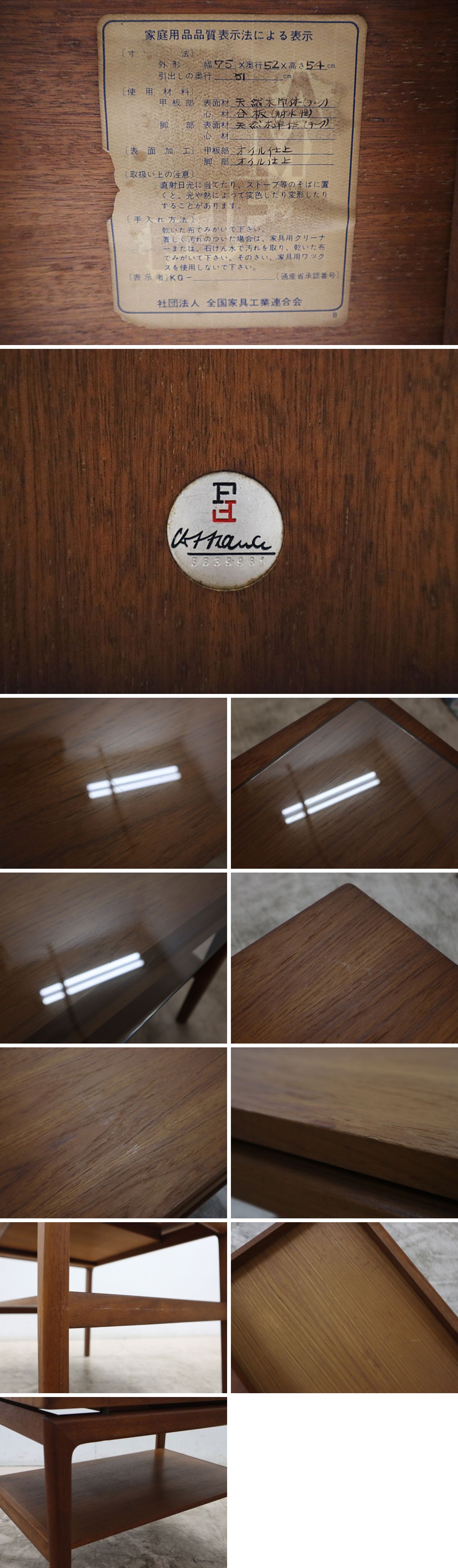 【仕様】 サイズ:約 W75×D52×H55cm、ガラス厚 約0.5cm ※実寸のため、多少の誤差はご了承下さい。 素材:チーク/オイル仕上げ、ガラス |