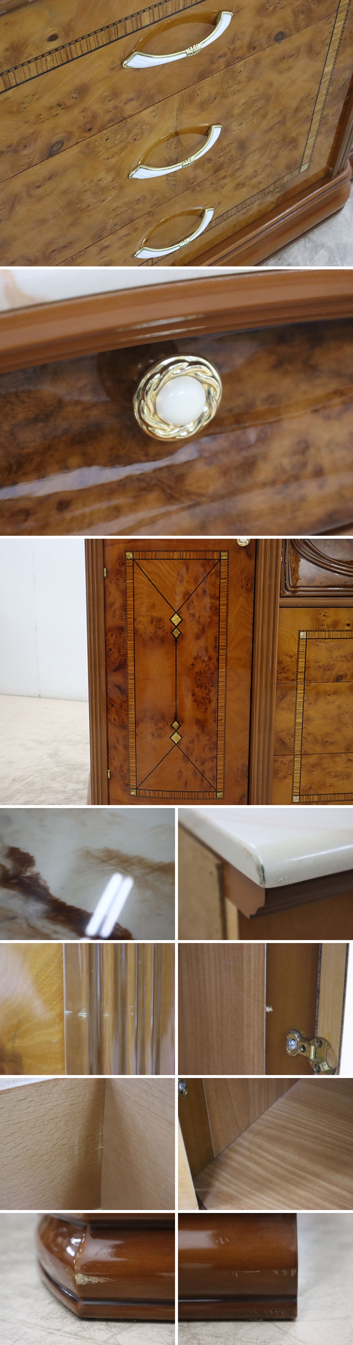 【商品説明】 優雅な曲線が特徴のクラシックなヨーロピアンスタイルでイタリア家具らしい上品な佇まいが感じられます。 天板や前面に施された曲線美が特徴的で、光沢のある質感が重厚感と上質感を与えています。 収納力もあり、リビング・ダイニング・書斎など幅広い空間でお使いいただけます。店舗でのご使用にもお薦めです。 その華やかな外観からインテリアの主役にもなります。 |