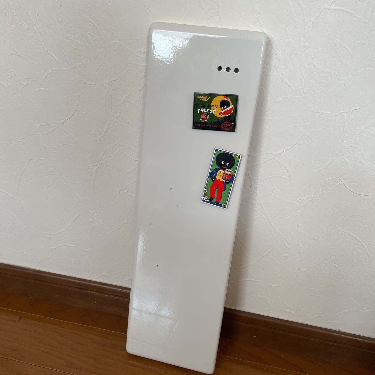 はじめに自己紹介欄をお読みになってください。 工場部品保管品 琺瑯加工鉄板加工品 size/493×143×d20mm 部分的にサビ・汚れなどあります。画像参照ください。 当方は、市販品にない無骨な感じが気に入ってメモボードやアクセサリーなど飾って使用しております。 同じ工場部品で大きさ違い、形違いなど数点ですが出品中です。よろしければご覧になってみてください。 あくまで商品説明と画像確認での判断となります。ノークレームノーリターンでお願いします。神経質な方はご遠慮ください |