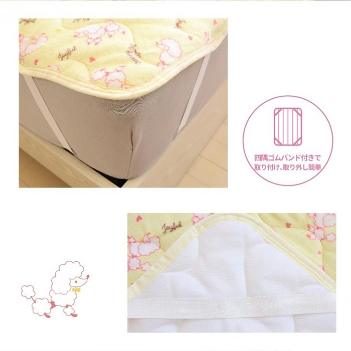 | きめ細かいフランネル生地を使用しているので、ふんわりと暖かくなめらかな肌触りです。 抗菌防臭仕様。 四隅ゴムバンド付きで取り付け、取り外し簡単。 デジタルプリント技術で模様がはっきりしていて美しい。 敷きパッド、枕、掛け布団などをシリーズで統一することでより魅力あふれるお部屋と寝心地に。 |