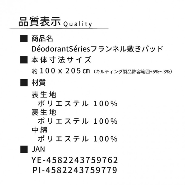 | [表地]ポリエステル100% [裏地]ポリエステル100% [中材]ポリエステル100% |