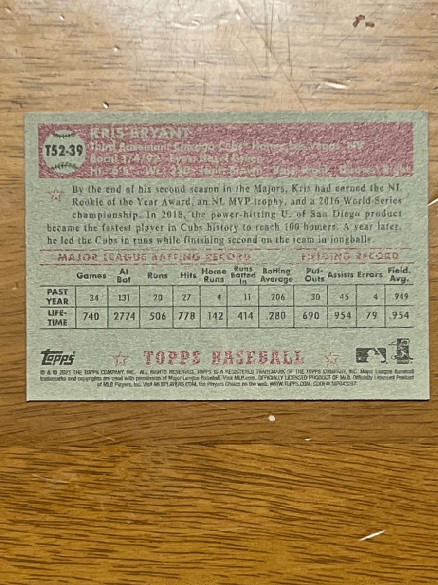 2021 Topps Series 1 クリス・ブライアント Kris Bryant 1952 Redux T52-39| 出价者 | 信用 | 价格 | 时间 |