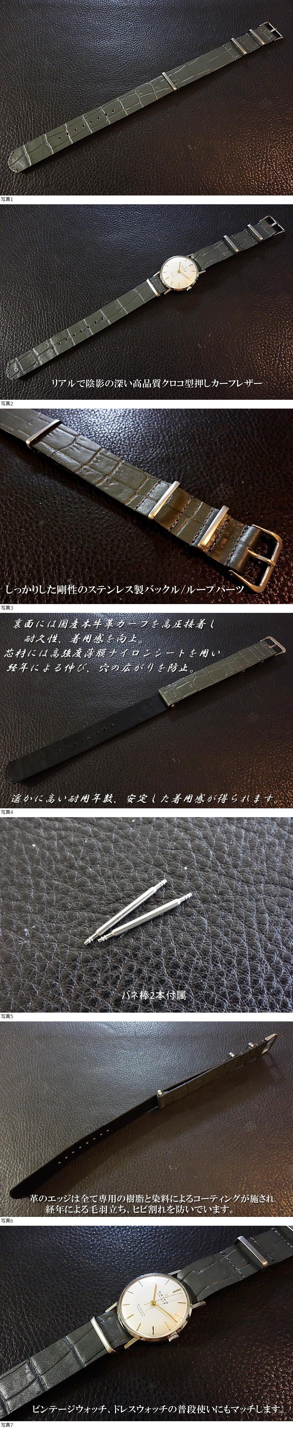 | ◆Leather NATO G10Strap◆高品質国産本牛革クロコ型押しカーフレザー Custom Order(BUCKLE COLOR) VINTAGE GRAY 16mm 強力撥水 日本製 受注生産(納期10日前後) |