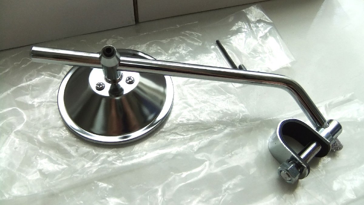<バイクライフ応援商品!> ★NEWクランプtype メッキ:ラウンドミラー 【新品1本】(左右共通) ※ハンドルパイプの外径(太さ)が22mm~24mmであればすべての車両に適合します ■■商品内容■■ ・スライド式セパレートタイプを採用 ・ミラーは直径 約95mmのラウンドミラー ・鏡面はConvex(凸面)Chromedレンズ採用!(ハイクオリティーレンズ) ・ステムの長さは「くの字型」 約70mm+200mm ・ステム直径(太さ)は約11mm ・ステム角度は130°を採用 ・ミラー材質は重量感あるスティールメッキ ・車検対応型の保安基準をクリア ・他の安いアジア製よりもワンランク上のクオリティ! 【その他】 *基本原付一種(50cc)及び2006年式以前の原付2種(~125cc)以外は「左右にミラーを取り付けないと違法」となります(2本SETは別途販売) *ミラー固定のボルトスクリュウを締め付ける時は適度な力で軽く締め付けしてください(力をかけ過ぎるとネジ山を壊します!) *ハンドルバーにしっかり固定できない場合はテープ等を巻いて対応してください ☆セパレートタイプにする事により無限の調整が可能となりました! アンダーミラーtypeにも対応可能です ■■おすすめ機種■■ 【HONDA】 ・モンキー125・DAX125・CT110・CT125・ハンターカブ・クロスカブ50・クロスカブ110・ベンリィ プロ・ズーマーX・グロム・GROM125・CL250・CL500・GB350/S・VTR250・CB400FOUR・CB400SF・ホーネット・HORNET・CB250F・CB400F・CB650F・CBF600・NC700X・NC700S・NC750X・NC750S・CB750-2・CB1000SF・CB1300SF・ホーク2・HAWK・CL400・CB223S・GB250・GB400・VRX400・CB400SS・マグナ・シャドウ・スティード・STEED・PCX125・PCX150・PCX160・フォルツァ250・FORZA・PS250・フェイズ・FAZE・フュージョンX 他 【SUZUKI】 ・ストリートマジック・グラストラッカー・ビッグボーイ・BIG BOY・Vストローム・V-STROM・GSX-S125・ジクサー・GIXXER・ST250E・ボルティ・インパルス・イナズマ・GSF1200・GSX1400・GSR250・GSR400・GSR600・GSR750・デスぺラード・グラディウス・GLADIUS・バンディット・BANDIT・GS1200SS・スカイウェイブ・SKYWAVE 他 【KAWASAKI】 ・ヴェルシス-X250・VERSYS・D-トラッカー・250TR・Z125・ZRX400・ZRX-2・ZRX1100・ZRX1200R・Z250・Z400・Z750・Z800・Z900・バリオス・BALIUS・ゼファー400χ・ゼファー750・ゼファー1100・ZEPHYR・エストレヤ・エリミネーター・バルカン・VULLCAN・エプシロン 他 【YAMAHA】 ・TDR250・TDM850・TDM900・TW200・TW225E・ビラーゴ・YB125SP・YBR125K・XSR125・SR400・SR500・SRV250・ジール250・ルネッサ・XJR400R・XJ6N・FZ6・FZ8・FZX750・V-MAX・Vマックス・XJR1200・XJR1300・MT-25・マグザム MAXAM・マジェスティ・MAJESTY 他 【注】…上記車両はおすすめ適合機種ですが、適合車以外の車両はハンドル径の確認して下さい! ■ 注意事項 | Attention ■ | ■■商品に関して■■ ※この商品は安価で提供できるように台湾にて発注製作しています 他のアジア製品に比べワンランク上の基準で製作しておりますが、やはり日本製に比べ劣る点はありますのでご理解の上ご購入下さい (クオリティにこだわる人は高くてもMADE IN JAPANブランドをお勧めします!)安価にミラー交換を希望されている方には最適と思いますのでぜひお試し下さい | |||||