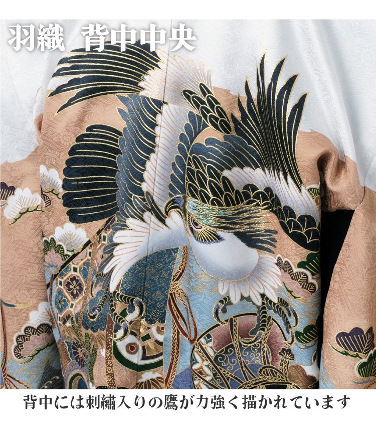| 着物サイズ | 【着物サイズ】 着物身丈:約 100cm 着物裄丈:約 55cm 着物袖丈:約 57cm 羽織身丈:約 65cm 【袴サイズ】 袴紐下:60cm(適応身長 約100~112cm) 【雪駄】 約 19.5cm |