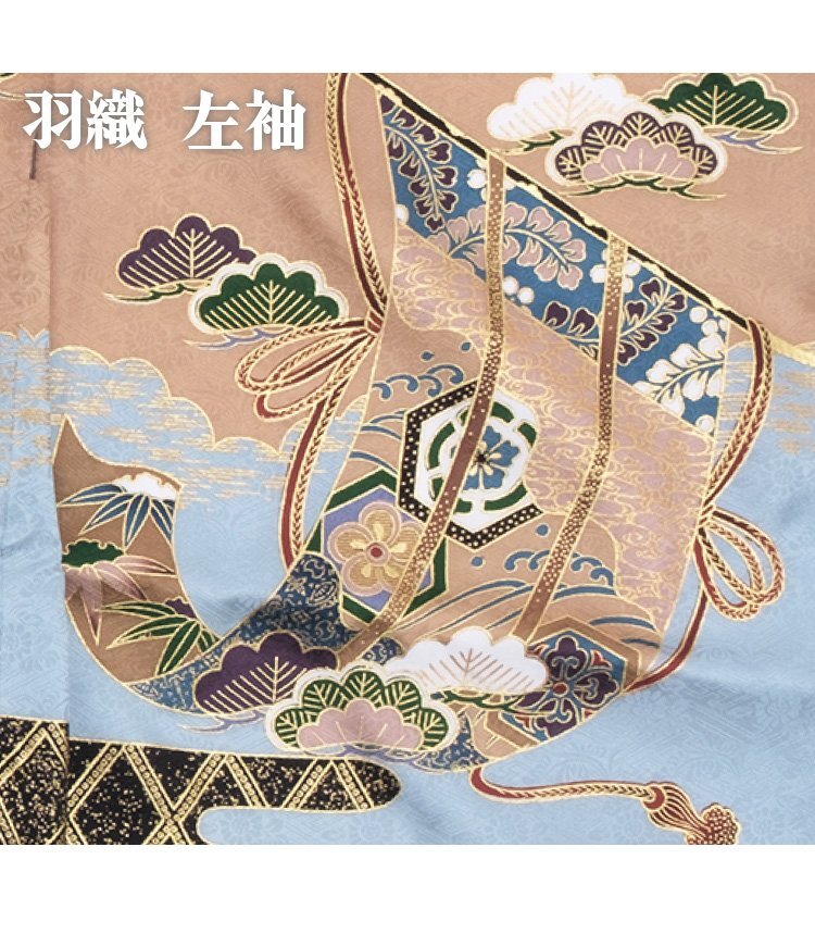 | 素材 | 羽織・着物 :(表地)絹 100% (裏地)ポリエステル 100% 長襦袢 :ポリエステル 100% |