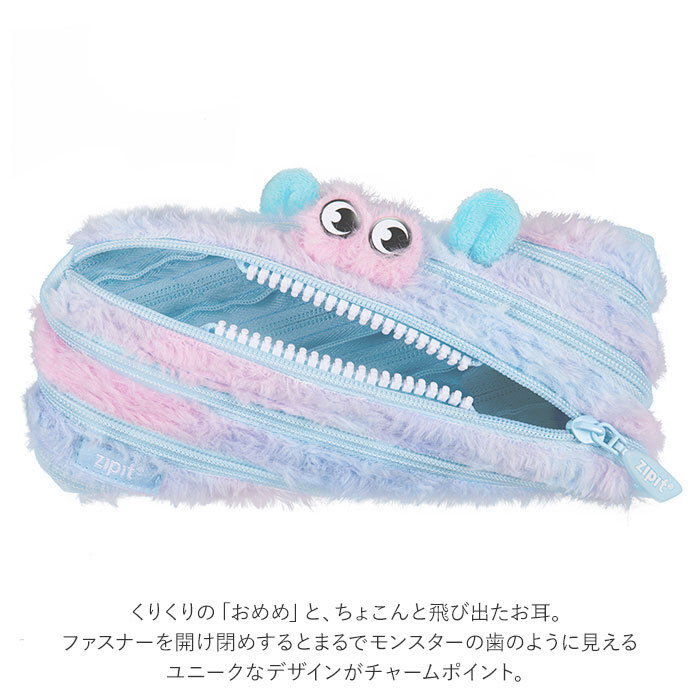 | 商品説明 | ・・1本の長いジッパーが、ファッショナブルなポーチに早変わり!大人気「Zipit(ジップイット)」にふわふわ・モンスターが仲間入り! ・くりくりの「おめめ」と、ちょこんと飛び出たお耳。ファスナーを開け閉めするとまるでモンスターの歯のように見えるユニークなデザインがチャームポイント。 ・1本のジッパーを閉じていくと、一瞬でペンケースのようなスリムなポーチに変身! ・ジッパーを解いていけば、1本の紐のようになるので、バッグの片隅にコンパクトに収納可能。 ・高品質で耐久性に優れたジッパーを採用。生地は軽量なポリエステル素材なので、持ち運びも楽ちん。 ・ポーチの中には30本ほどのペンが収納でき、小ぶりな見た目よりも収納力抜群!小さめのハサミやミニカッターなどのステーショナリーもすっぽり。 ・ペンケースとしてだけでなく、化粧ポーチやモバイル小物用ポーチなど、使い方は自分次第! ・・【Zipit History】 ・イスラエルのデザインカレッジの学生だったイシャイ・ハルムートが、大学のプロジェクトで開発したジッパーポーチが「Zipit」誕生のきっかけ。 ・その斬新な機能性と、モンスターをかたどった愛くるしいルックスで、子どもから大人まで世界中で大人気! |