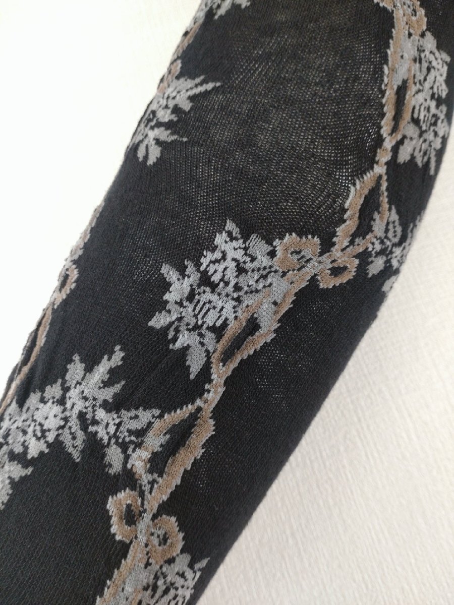 ここでしか買えない柄レギンスロングスカートからチラッと見えても可愛い山登りやアウトドアにもピッタリ薄手なので冷え対策でズボン下にもサイズ:JJM~L(ヒップ105~128 身長150~165)置き寸:総丈85cm 股上26cm*メリヤス商品の為多少の誤差がありますカラー:ブラック品質:綿・ナイロン・アクリル日本製※手洗いを推奨しておりますが、洗濯機をご利用の際は小さめのネットに入れ形を整えて干してください。乾燥機は使用しないでください。