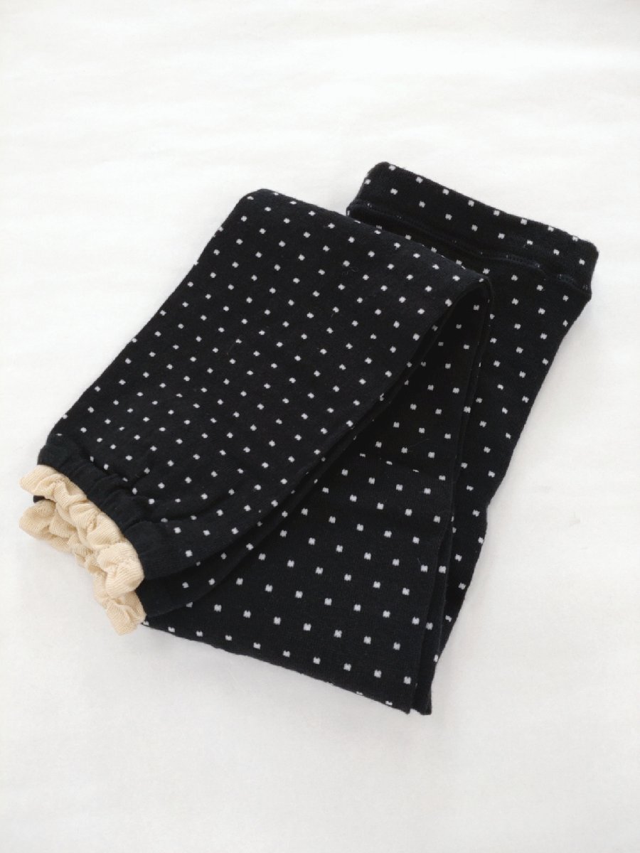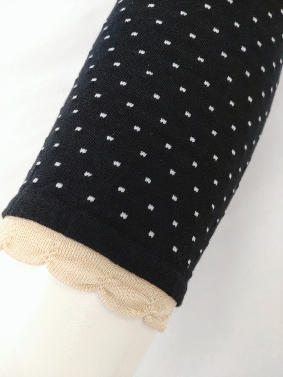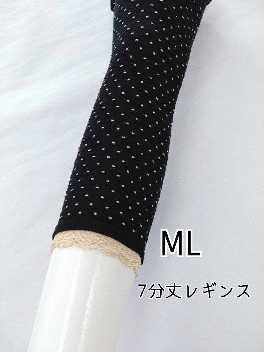 ここでしか買えないドット柄レギンス綿素材で薄手なのでズボン下に履いてもひびきません。サイズ:ML(ヒップ85~98 身長150~165)置き寸:総丈約65cm 股上約23cm*メリヤス商品の為多少の誤差がありますカラー:ブラック品質:綿・アクリル・ナイロン素材の厚み感:やや薄い日本製※手洗いを推奨しておりますが、洗濯機をご利用の際は小さめネットに入れて形を整えてから干してください。乾燥機は使用しないでください。※股上浅めの商品です