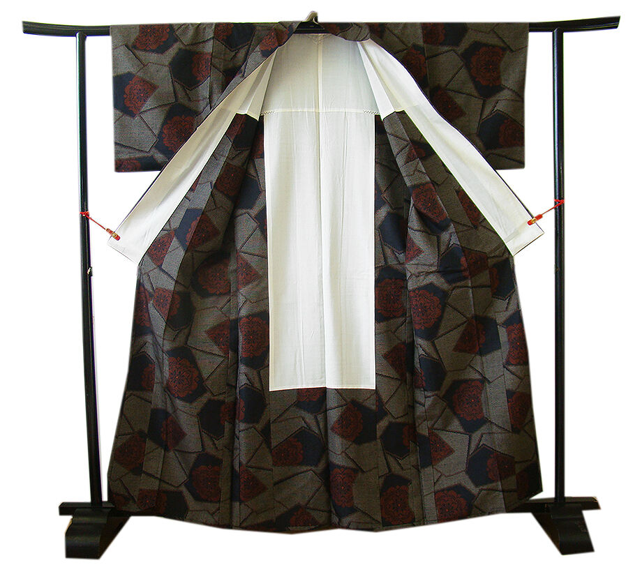 | 商品説明 | こちらのお品は「単衣」ですので5月、6月、9月にお召頂ければと思います。 着物には、大きく分けて「袷(あわせ)の着物」と「単衣(ひとえ)の着物」と「夏着物」があります。 反物(表地)を着物に仕立てるときに、裏地類をつけるものを袷の着物、 つけないものを単衣の着物と呼び、胴裏や八掛といった裏地がつかない一枚ものの着物です。 また裏地がないため、座る時などにヒップのラインが目立たないよう、 居敷当て(いしきあて)の生地をつけることもあります。 肩裏付き、居敷当て1巾付いております。 しなやかなさらりとした手触りのぼそや節が味わい深い着心地良い単衣仕立ての紬地、 黒、こげ茶、渋いエンジ色等の華文柄の織柄が粋な着物姿を演出しております。 |