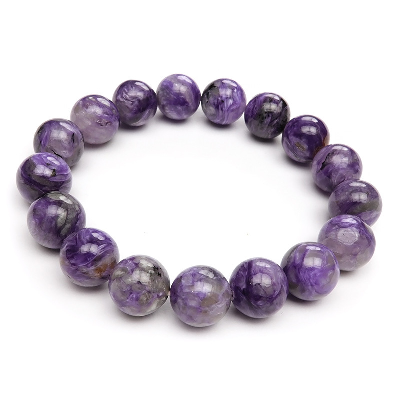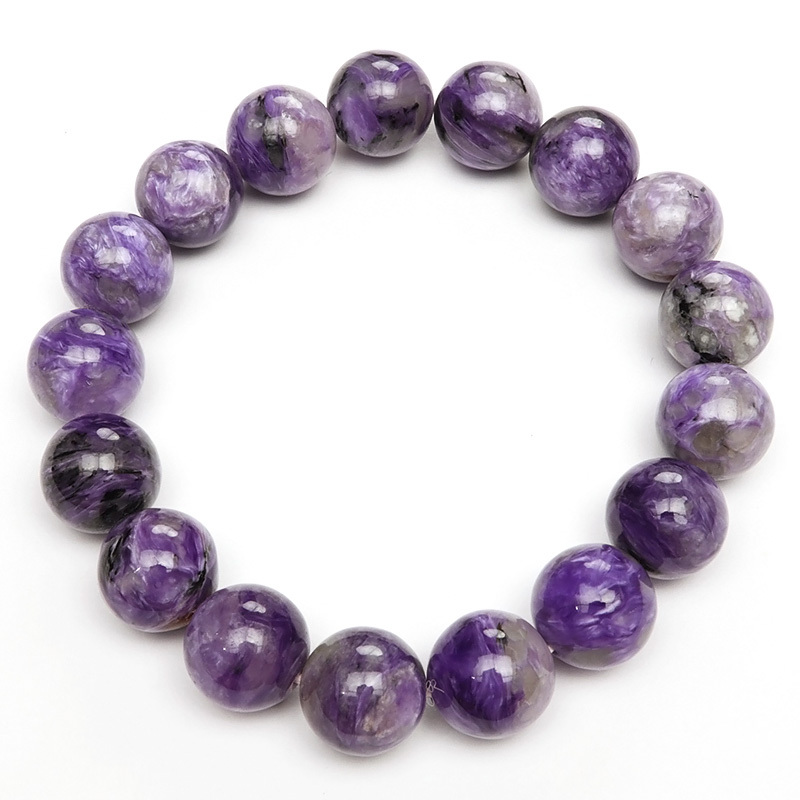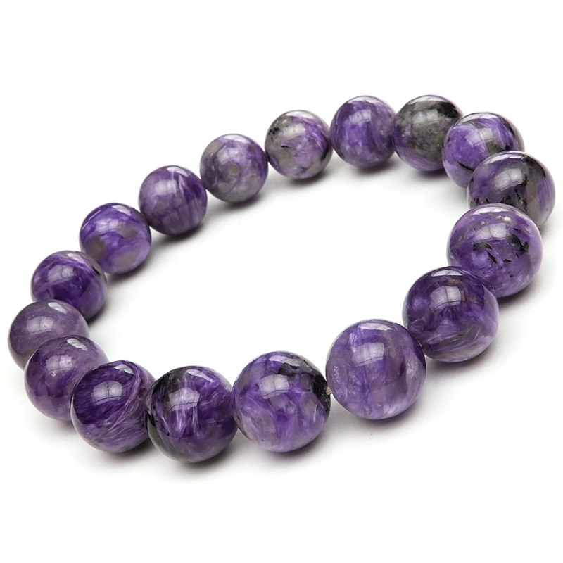 独特のカラーコントラスト模様が味わい深いチャロアイトの丸玉ブレスです。