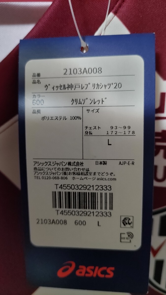 ヴィッセル神戸 ホームイニエスタ引退 レプリカユニフォーム8番 asics2021ファーストモデル L size Kawasaki ダイヤ貴重品