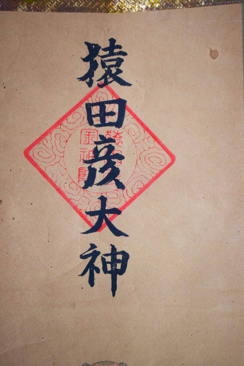 猿田彦大神 石版 軸長さ約94幅約25cm 軸装の上下にイタミなどあります◆猿田彦大神:天孫降臨の際 道案内を務めた神 万事良い方へ導く「みちひらきの大神」★この商品はレターパックプラス600円でお送りいたします ★自己紹介欄及び商品説明お読みの上 入札よろしくお願いいたします
