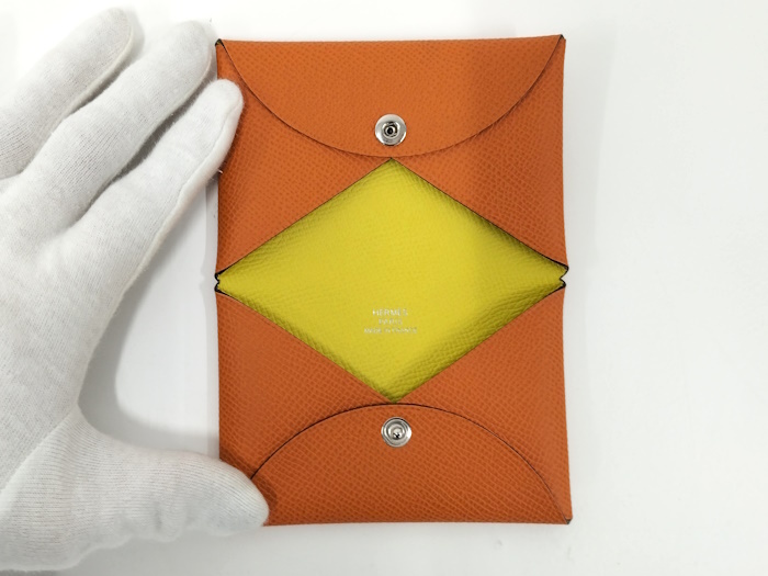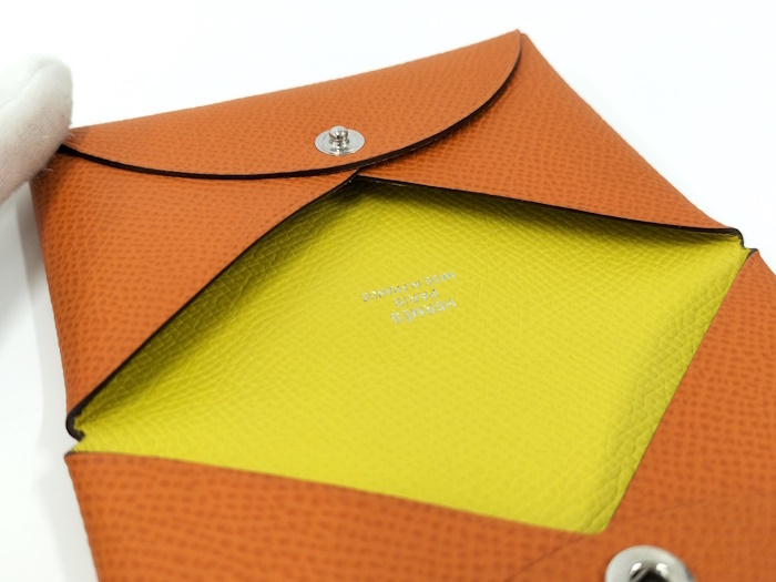 | ◆商品情報 | ・カラー:オレンジ×イエロー ・素材/ライン:レザー ・サイズ:最大約 W10×H7(cm) ・ポケット×2 ・シリアル:B刻印 |