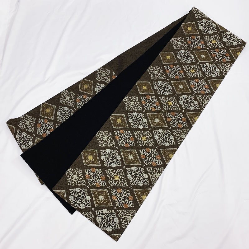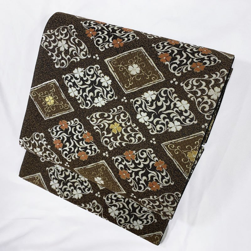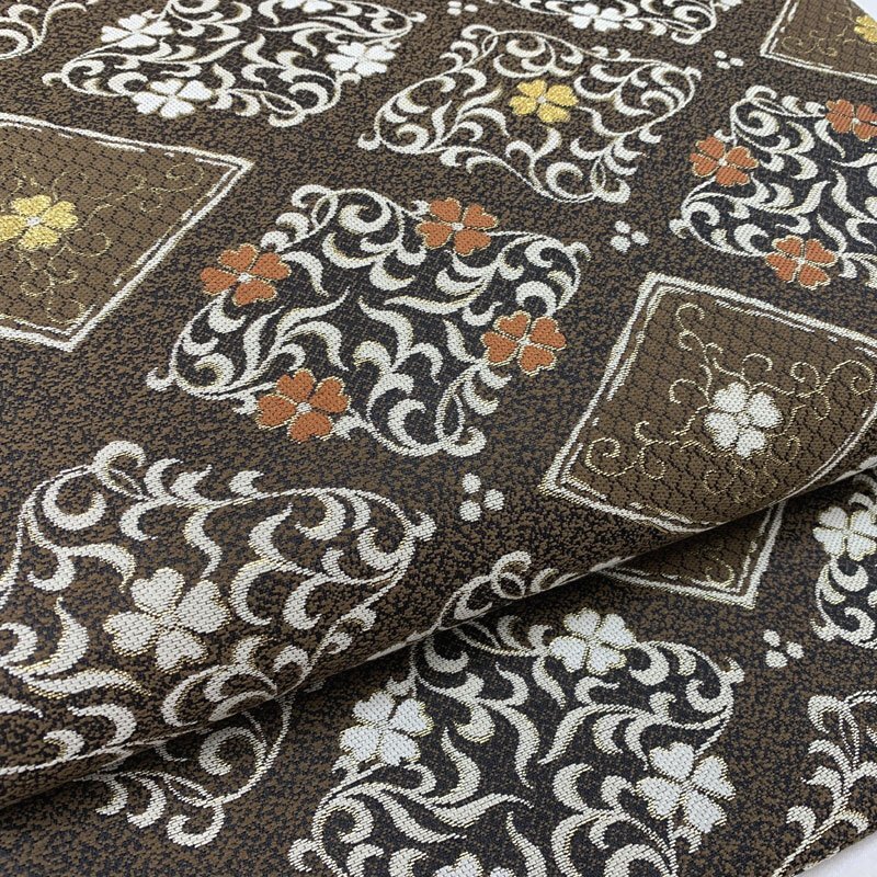 | ◇西陣 廣部商事 花菱 唐草 金糸 六通 袋帯◇美品 (No.hd) 廣部商事謹製の袋帯です。唐草の花菱が織り出されています。 締め跡はございますが、特に目立つようなシミ・ダメージもなく美品です。 【素材】正絹 【色】茶系 *モニターによって色味は実際と異なる場合がございます。 【サイズ】幅:31cm、長さ:435cm *素人採寸のため、多少の誤差はご容赦ください。 上質な逸品ですので、いかがでしょうか?よいお品物でお勧めです^^ | |