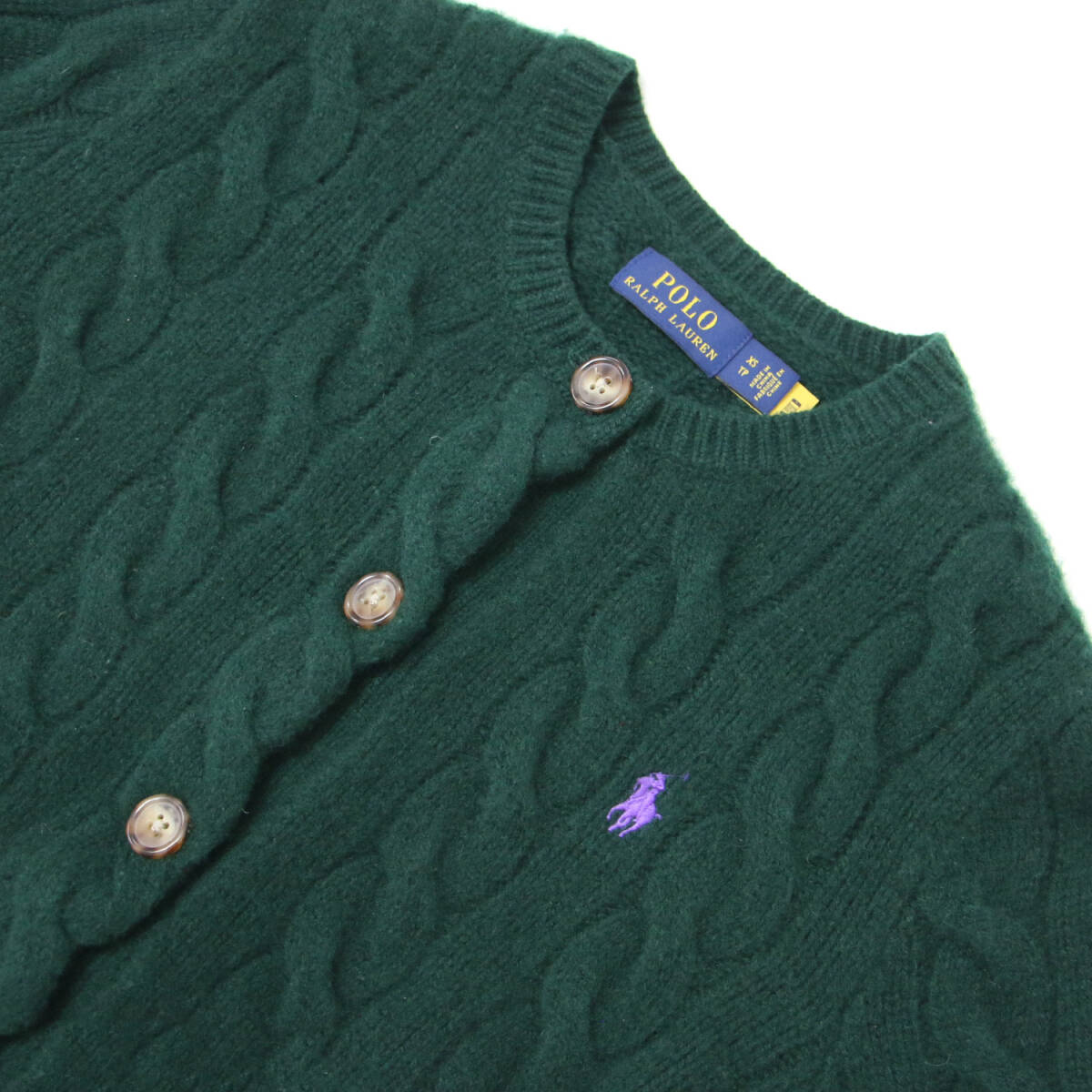 | 【ブランド名】POLO Ralph Lauren(ポロ ラルフローレン) 【素材】ウール 90% カシミヤ 10% 【商品説明】 ・クルーネック ・ケーブル編み ・ポニー刺繍 【カラー】グリーン 【サイズ】XS 着丈約50cm(背中襟下から)×身幅約40cm(脇下から)×肩幅約34.5cm×袖丈約62.5cm(肩上から) 【状態】B.中古(良品) 【付属品】なし ![]() ※色がある場合、モニターの発色の具合によって実際のものと色が異なる場合があります。 お問い合わせに関しましてはメールのみでのご対応とさせていただいておりますのでご了承下さいませ。 |
