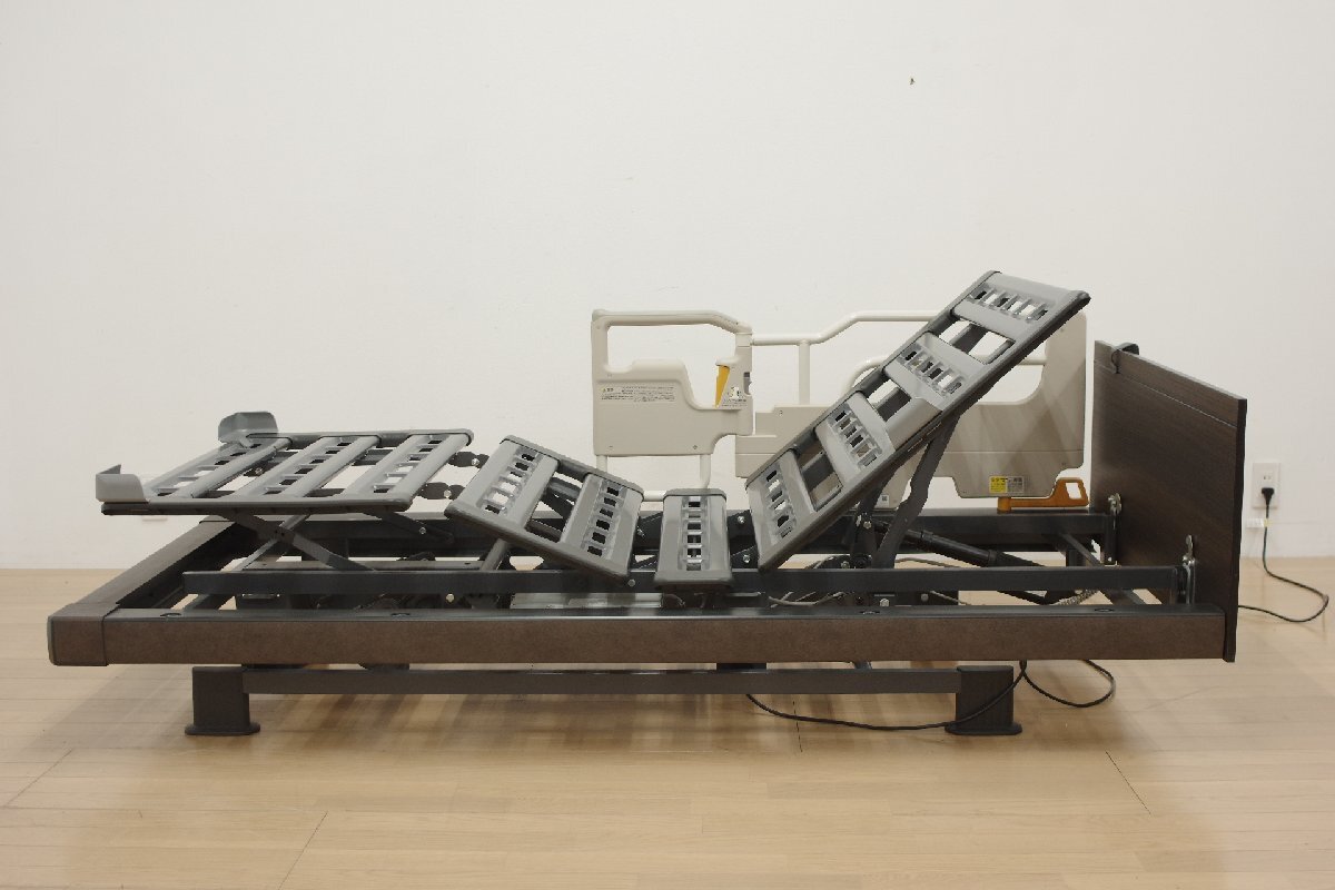 【商品紹介】 パラマウントベッドより、セミシングルベッドのご紹介です。 機種:3モーター スタイル:ハリウッド ボード形状:スクエア ボードカラー:ダークオーク フレームカラー:ブラウンサンド この機会に是非ご検討くださいませ。 【コンディション】 こちらの商品は中古品です。 ・マットレス横側のずれ防止パーツが1つ欠品しています。 ・フレーム角部分に、打痕やスレ、キズがございます。 全体的に目立つ大きなダメージもなく、まだまだご愛用頂ける状態です。 ※清掃、撮影時に目立つ箇所を抜粋して写真掲載しておりますが、同等の傷などがあるものとご了承ください。尚、商品ページの追加写真にて状態をご確認の上、ご検討いただけますよう、お願いいたします。 この他にも商品を多数出品しておりますので、こちらから御覧下さい。 | ||