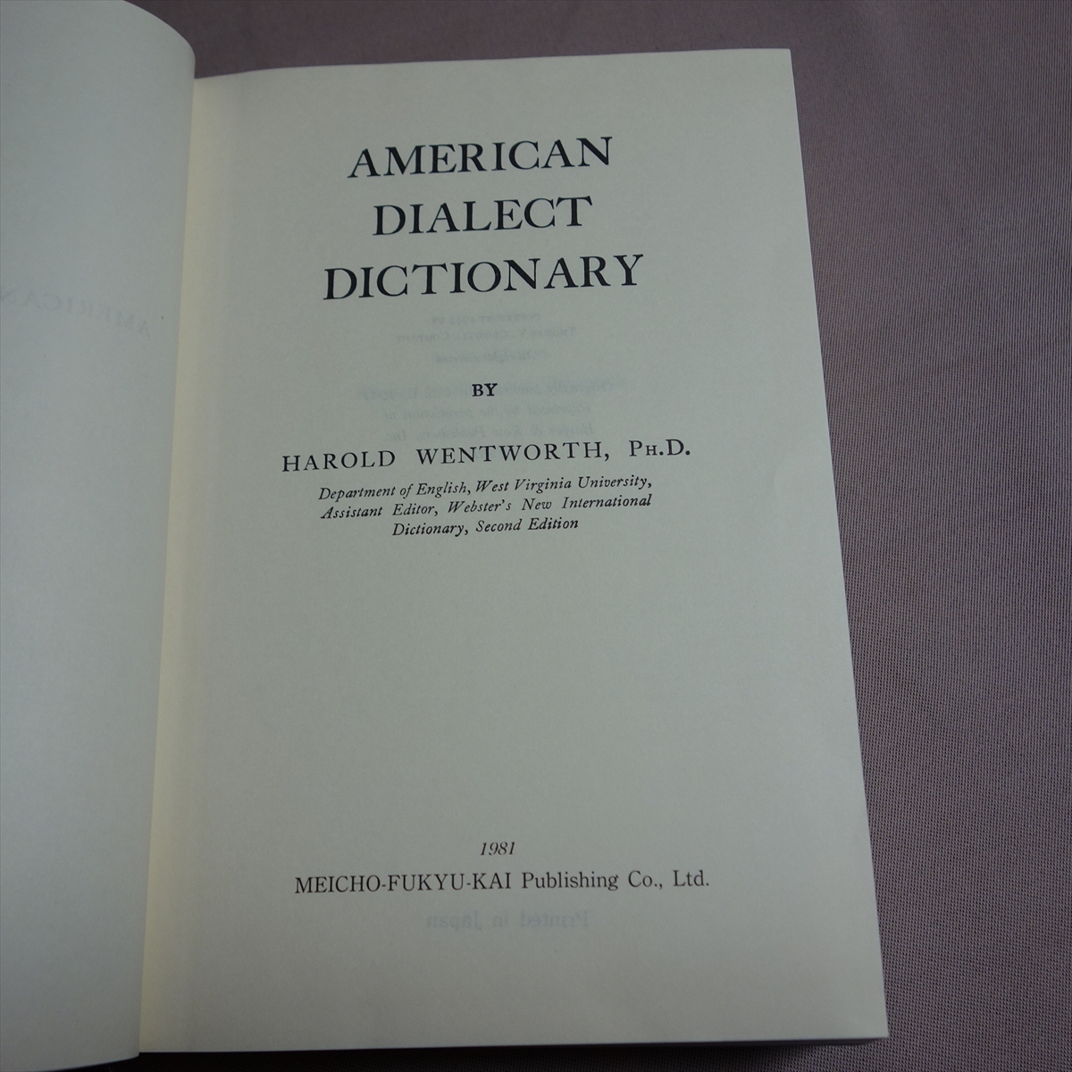 | 【英語】 American Dialect Dictionary Harold Wentworth 昭和56年 名著普及会 / アメリカ 方言 辞典 ハロルド・ウェントワース | |
