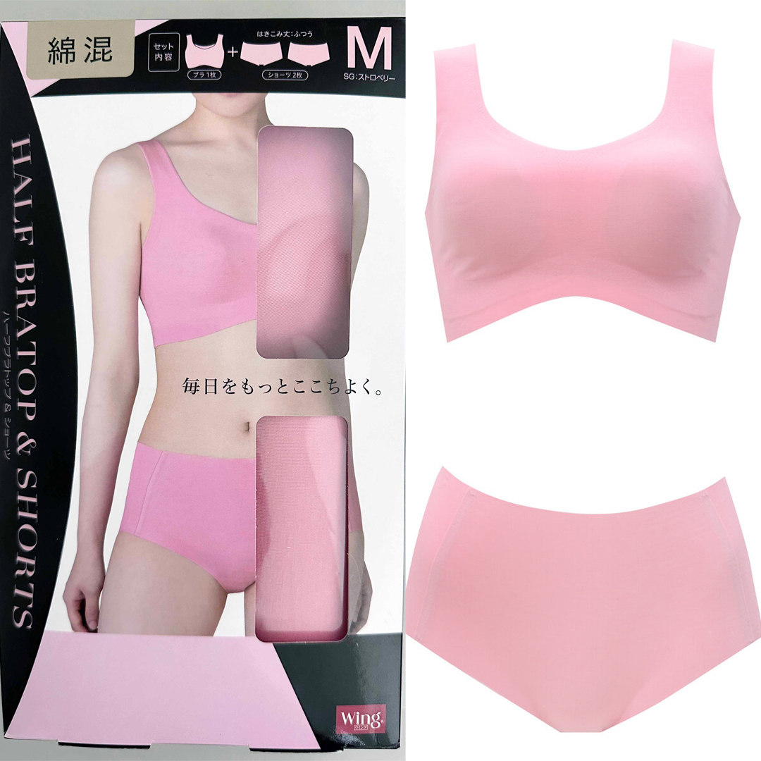 M 3枚 セット ★ Wakoal ワコール Wing ウイング ブラトップ ×1枚 ショーツ ×2枚 ピンク フラット コットン 綿混 ブラジャー パンツ ブラ