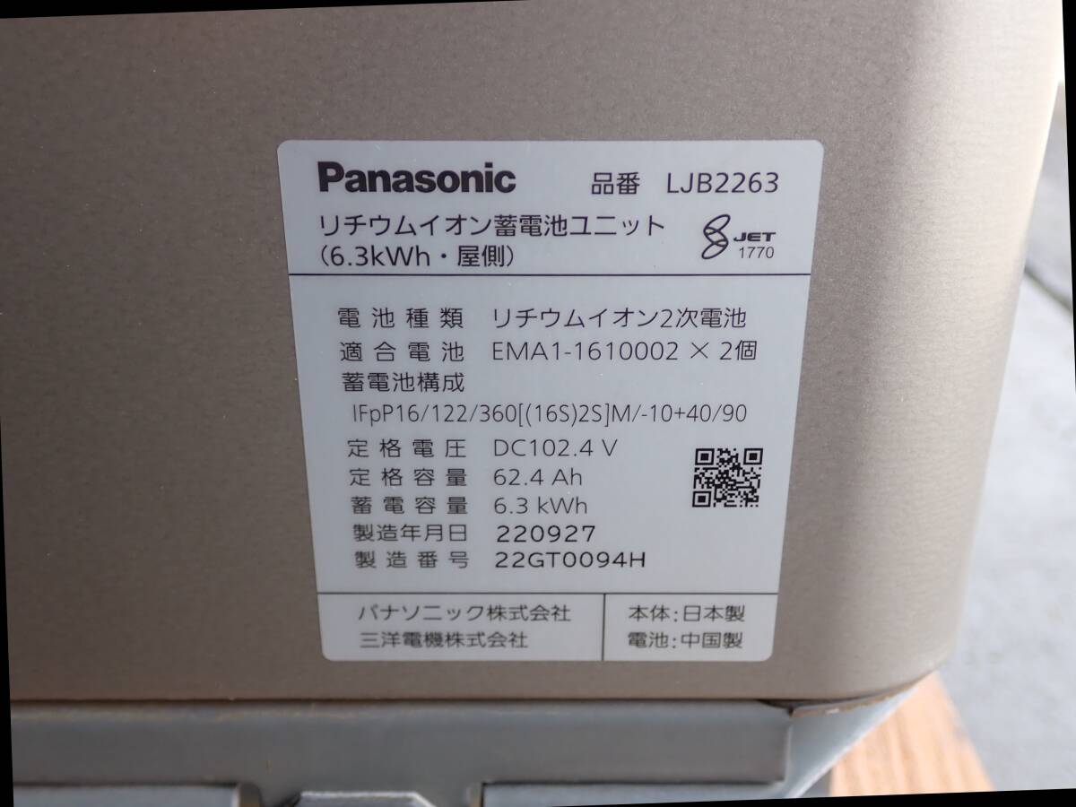 P パナソニック リチウムイオン蓄電池ユニット 蓄電池のみ 6.3kWh 2022年製 LJB2263 ※直接引き取り推奨 NT0616-1xxxx2