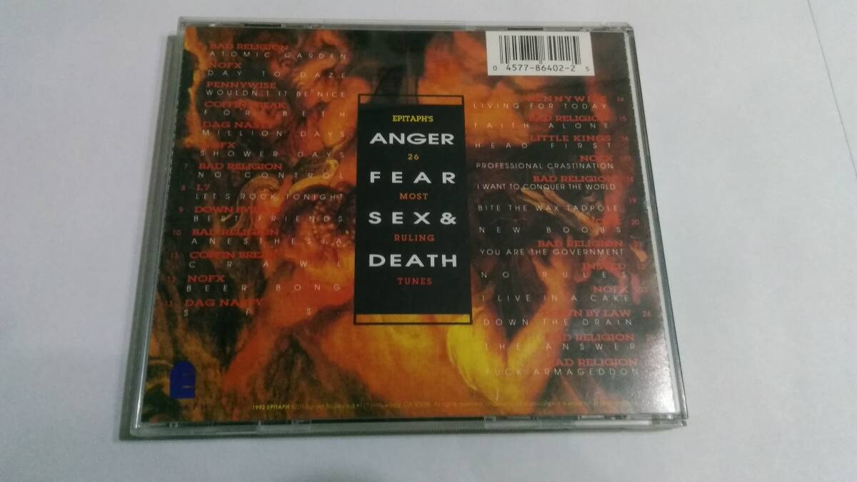 ご覧頂き有難う御座います。VA/More Songs About Anger, Fear, Sex & Deathです。 1992年 輸入盤 Epitaph - 86402-2, Epitaph - #86402-2 状態ですがケースにスレ ディスクは少しキズ(PCで全曲軽くチェックしました) ジャケットにややシワ、表紙にカビ汚れがあります 1 Bad Religion - Atomic Garden 3:12 2 NoFX - Day To Daze 1:58 3 Pennywise - Wouldn't It Be Nice 2:07 4 Coffin Break - For Beth 3:20 5 Dag Nasty - Million Days 3:38 6 NoFX - Shower Days 2:11 7 Bad Religion - No Control 1:46 8 L7 - Let's Rock Tonight 3:07 9 Down By Law - Best Friends 3:13 10 Bad Religion - Anesthesia 3:00 11 Coffin Break - Crawl 4:30 12 NoFX - Beer Bong 2:31 13 Dag Nasty - SFS 2:52 14 Pennywise - Living For Today 3:08 15 Bad Religion - Faith Alone 3:34 16 Little Kings - Head First 2:00 17 NoFX - Professional Crastination 2:46 18 Bad Religion - I Want To Conquer The World 2:18 19 L7 - Bite The Wax Tadpole 2:15 20 NoFX - New Boobs 3:26 21 Bad Religion - You Are The Government 1:22 22 Insted - No Rules 1:57 23 NoFX - I Live In A Cake 1:09 24 Down By Law - Down The Drain 2:38 25 Bad Religion - The Answer 3:23 26 Bad Religion - Fuck Armageddon 2:50 | ||